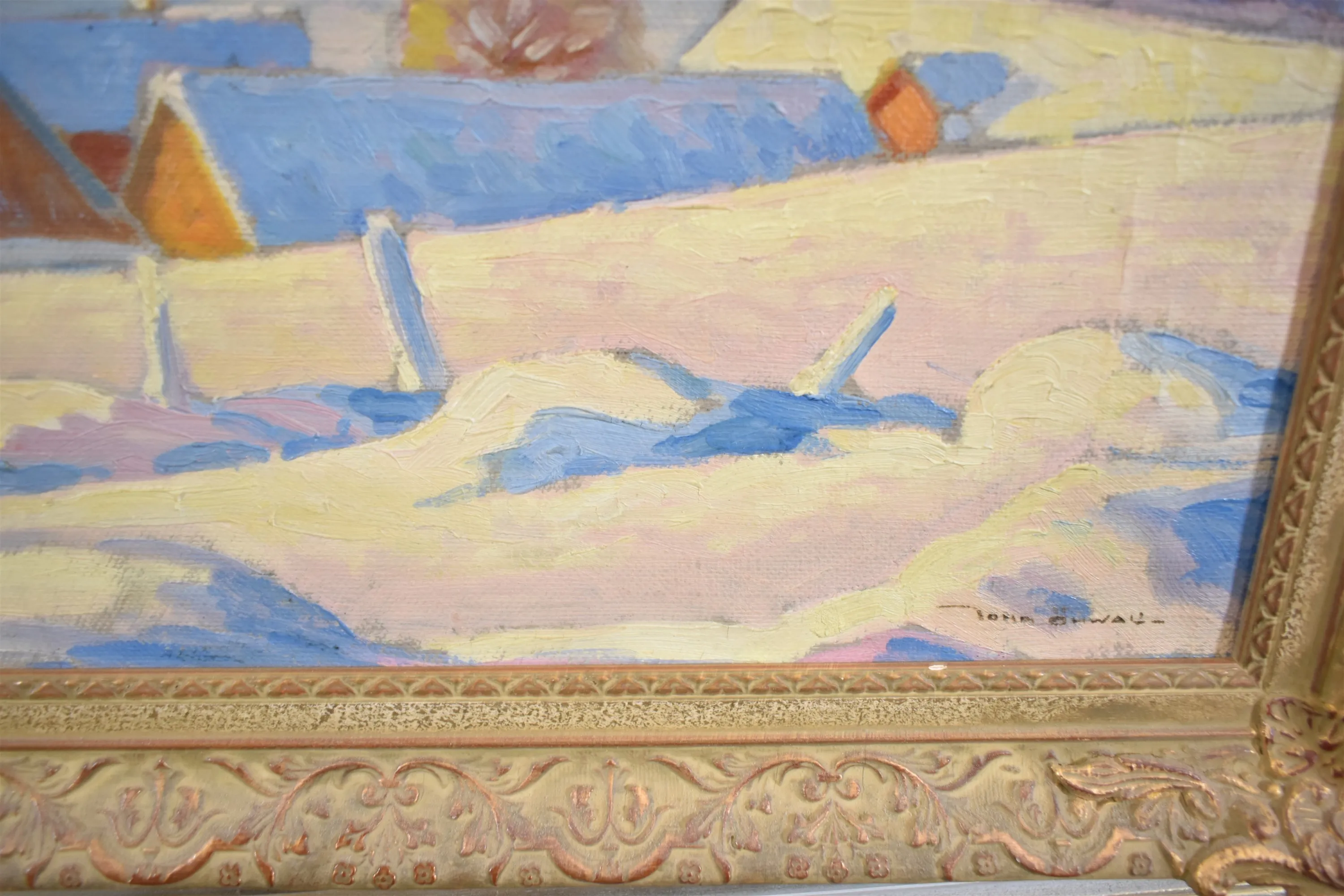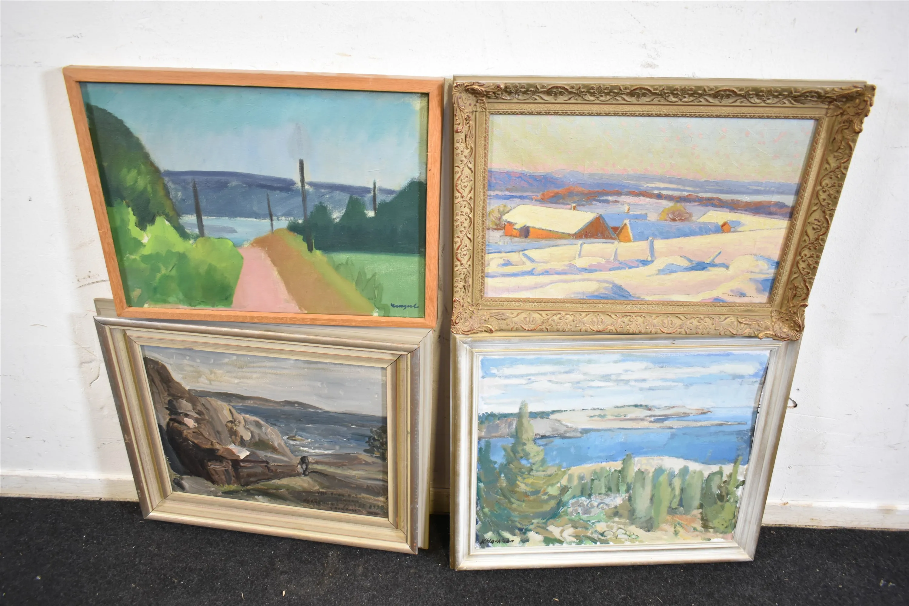 14658. Tavlor 4 st oljemålningar bl.a John Öhvall, största mått 53 x 46 cm