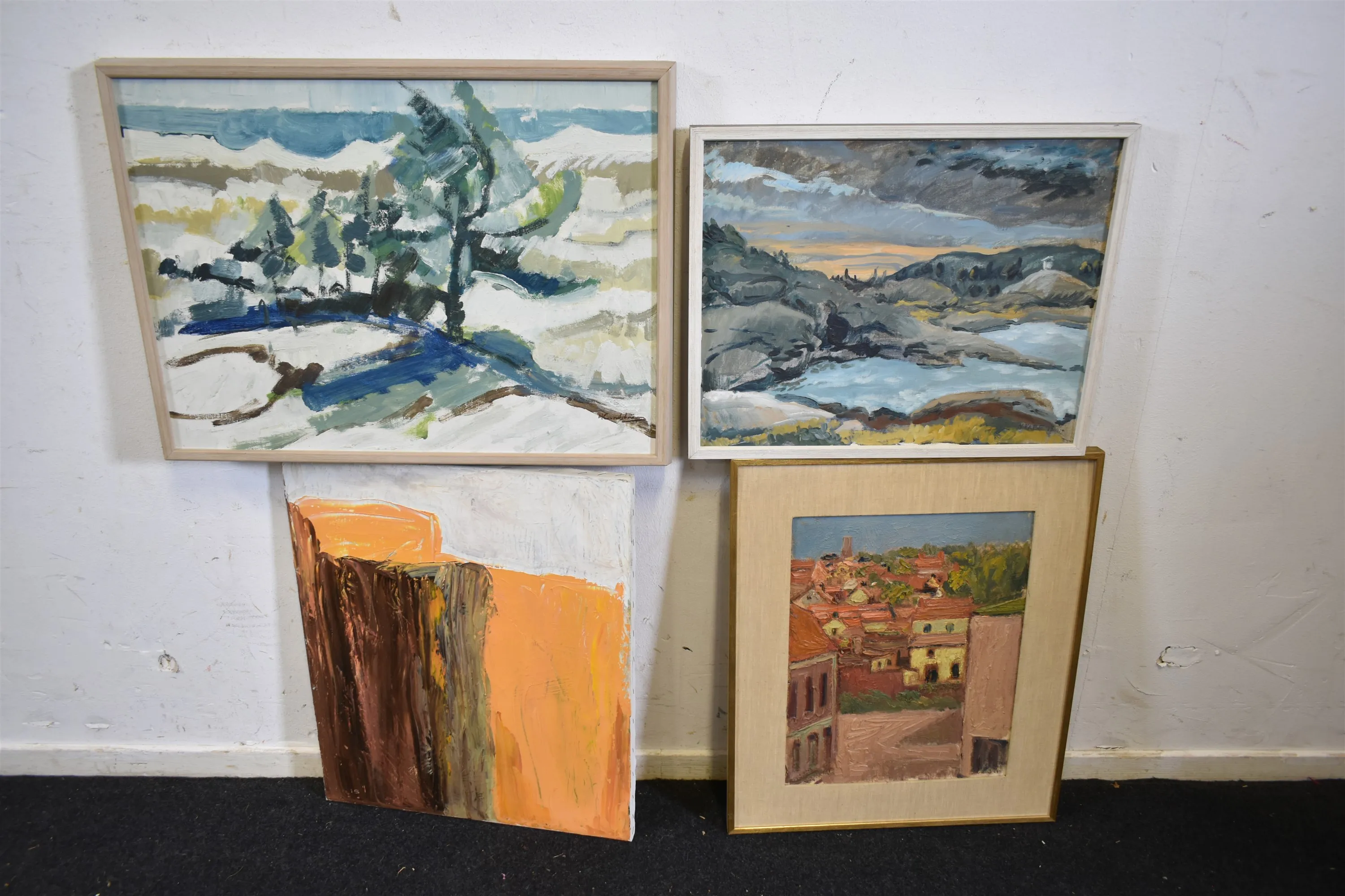 6824. Tavlor 4 st oljor bl.a Helge Lundström, mått 63 x 47 cm