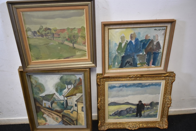 13962. Tavlor 4 st oljor största mått 48 x 58 cm