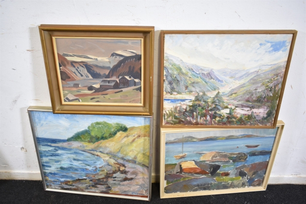 14634. Tavlor 4 st oljor största mått 55 x 48 cm
