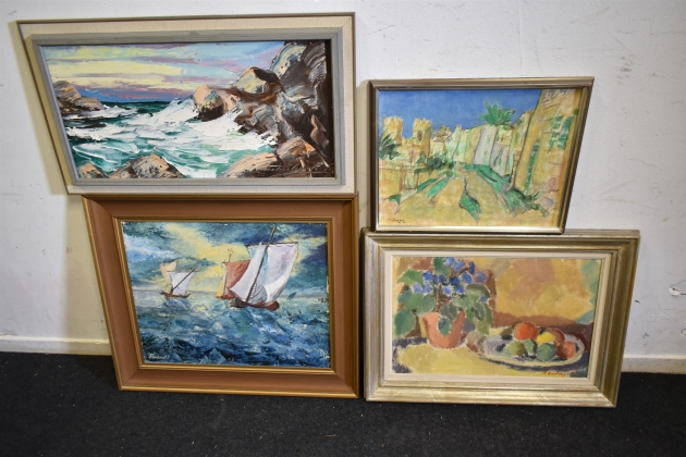 16584. Tavlor 4 st oljor största mått 56 x 66 cm