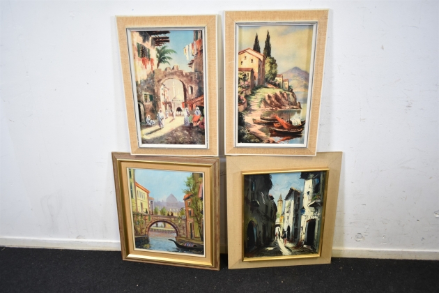 14557. Tavlor 4 st stadsmotiv olor & reproduktioner största mått 53 x 61 cm