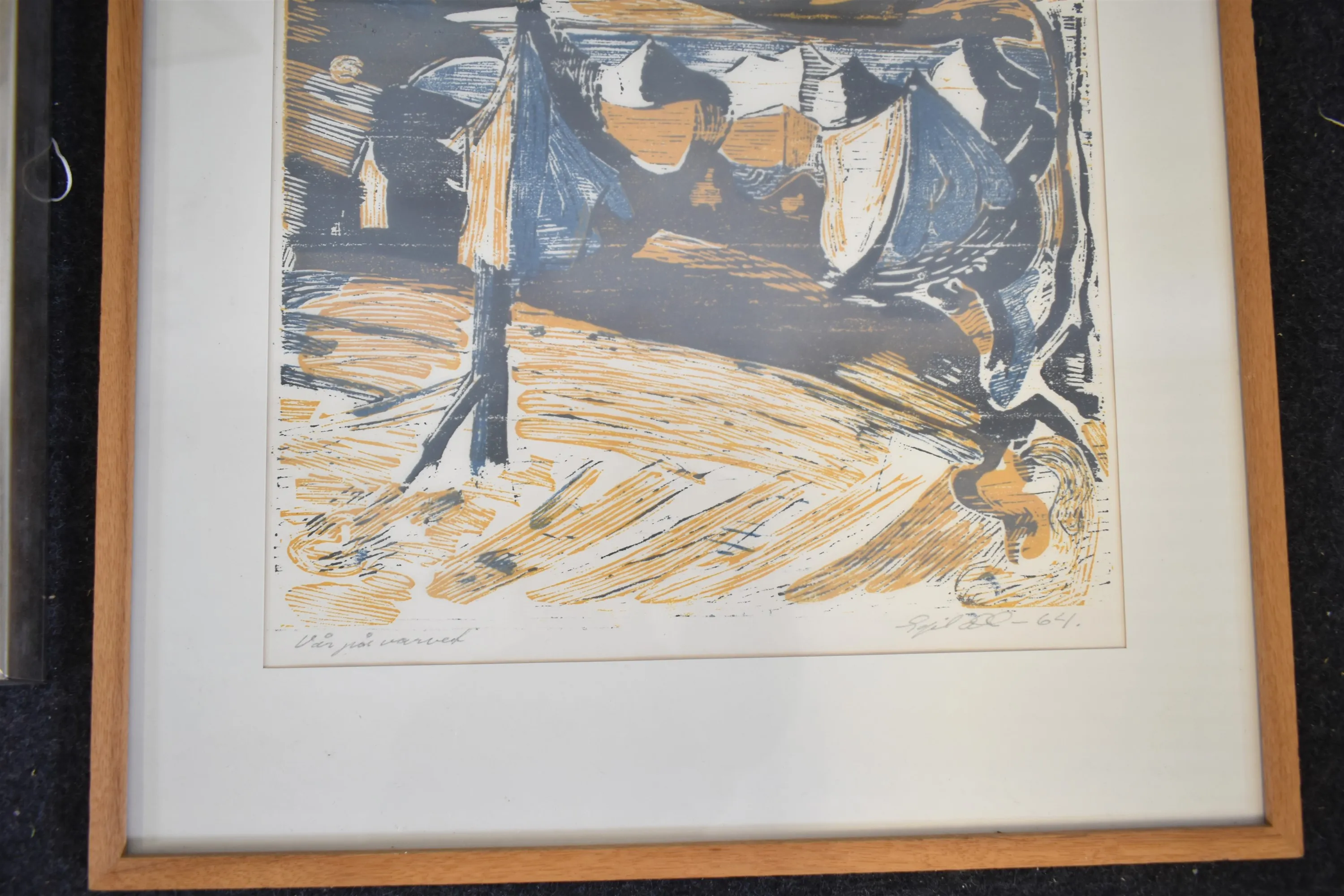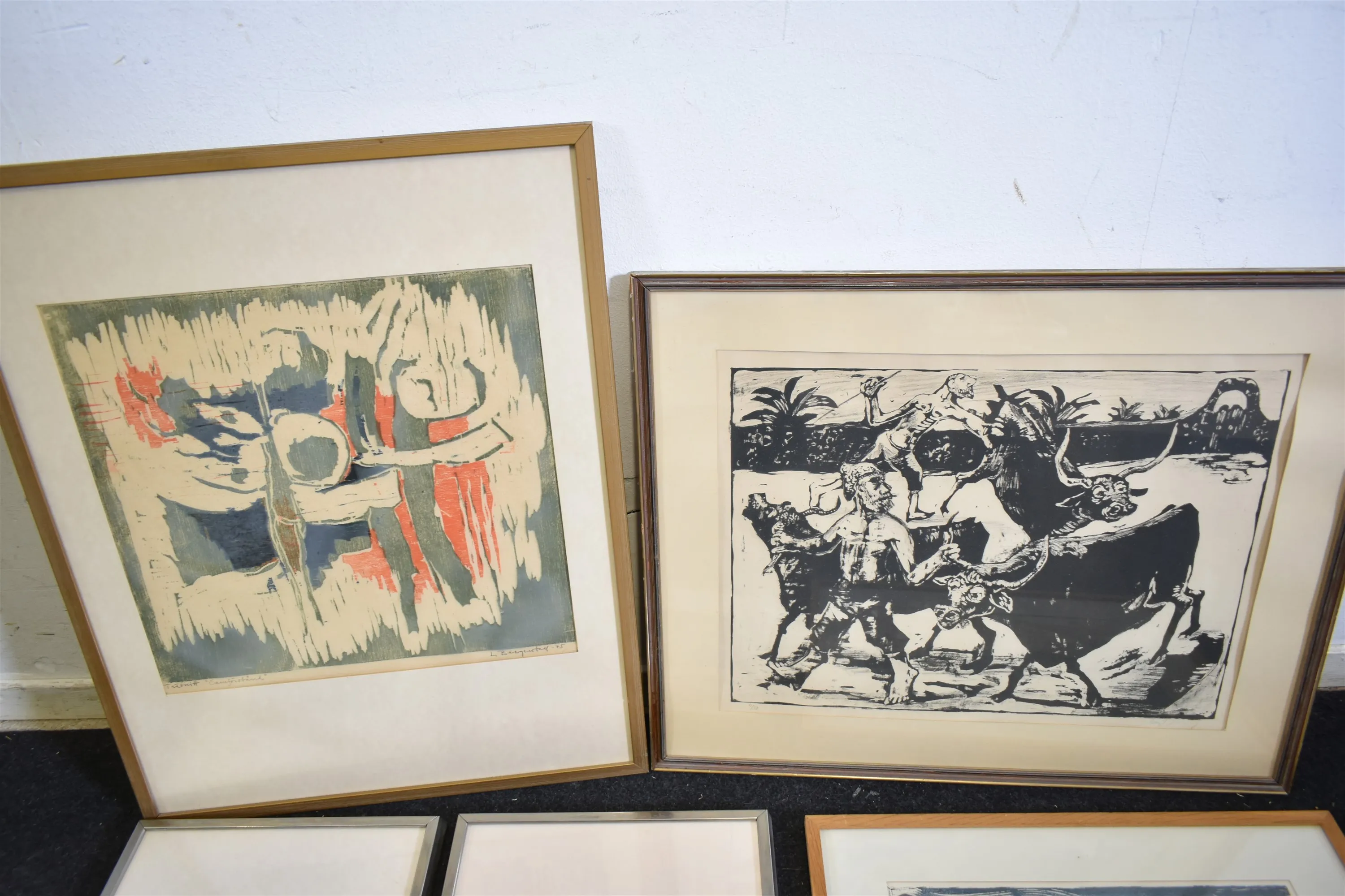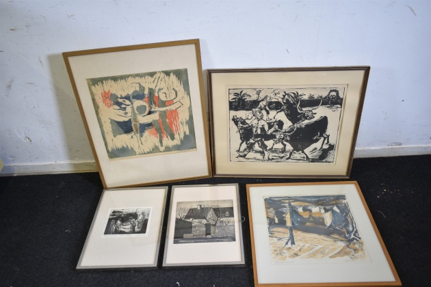 15604. Tavlor 5 st, bl.a etsningar, största mått 52 x 66 cm