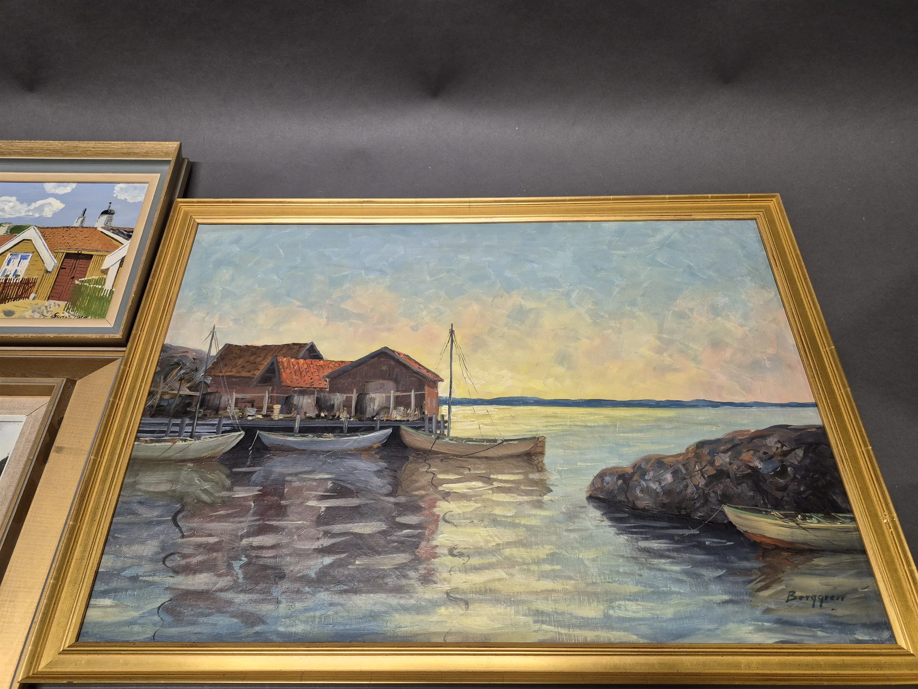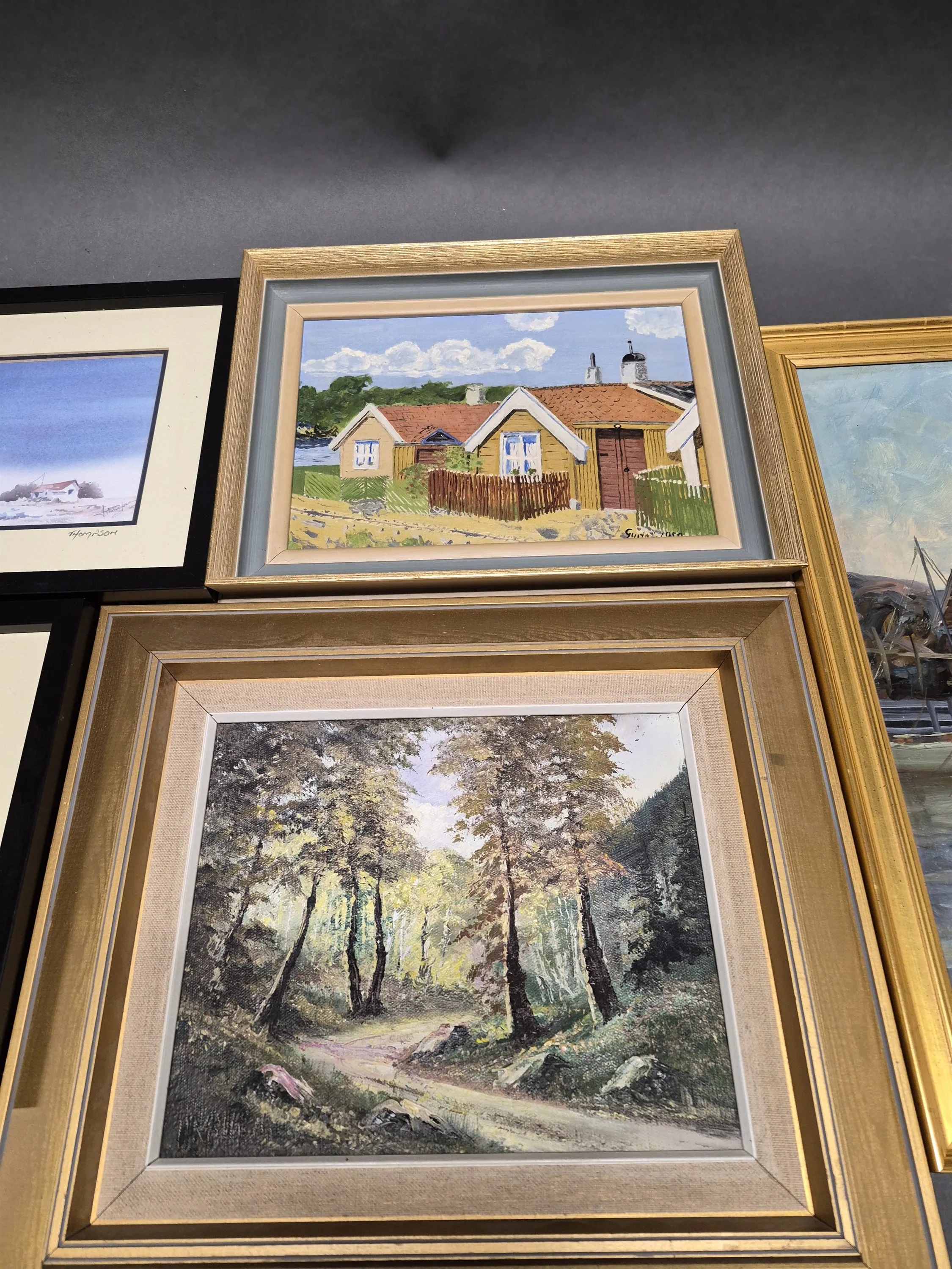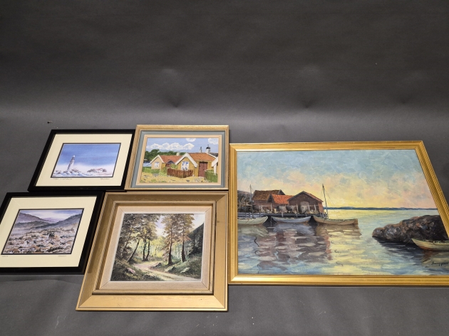 17061. Tavlor 5 st bl.a olja H.Köllich största mått 70 x 50 cm