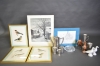 7618. Tavlor 5 st bla fågelmotiv och metall, mått största tavla 51x40 cm