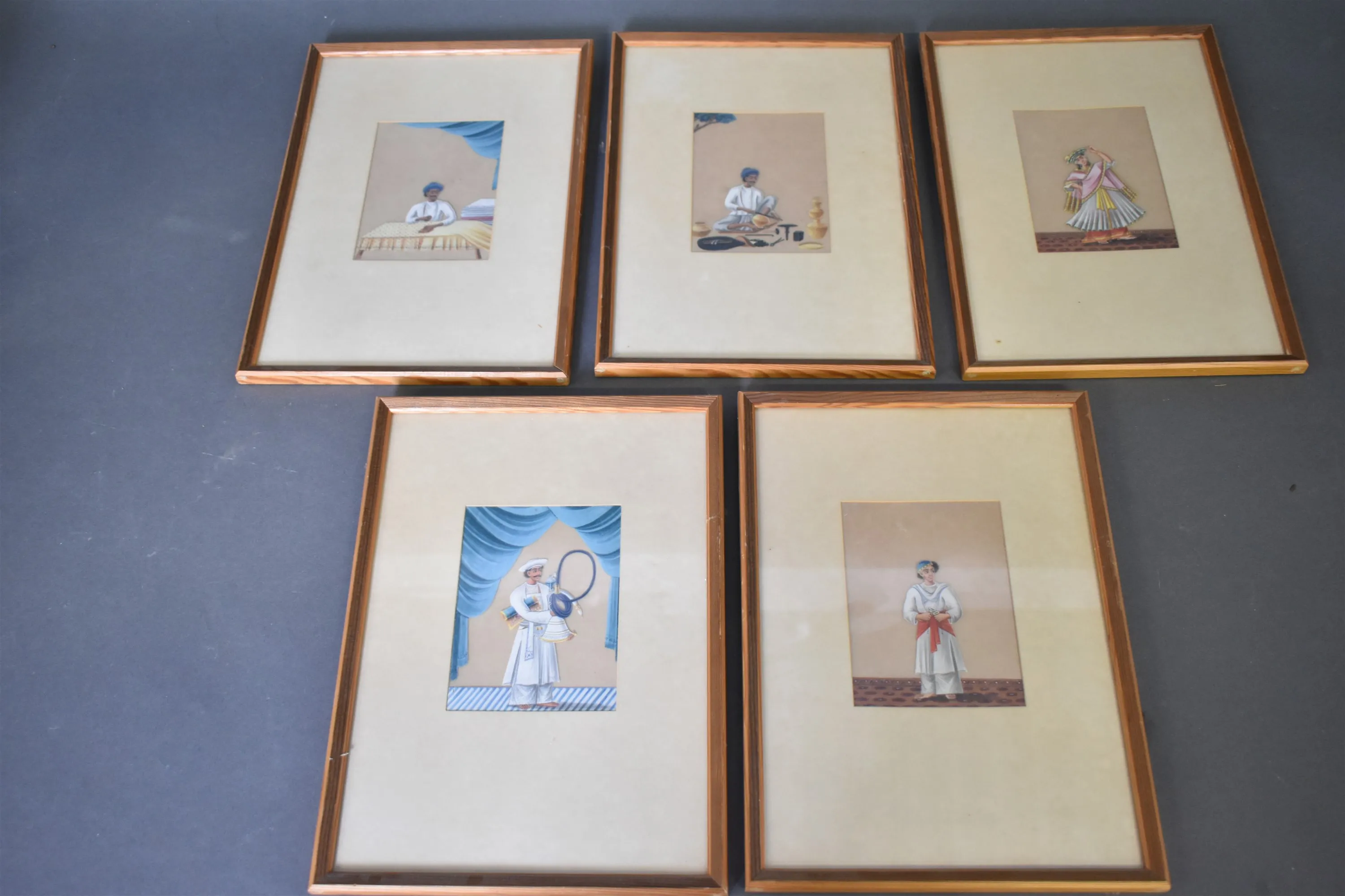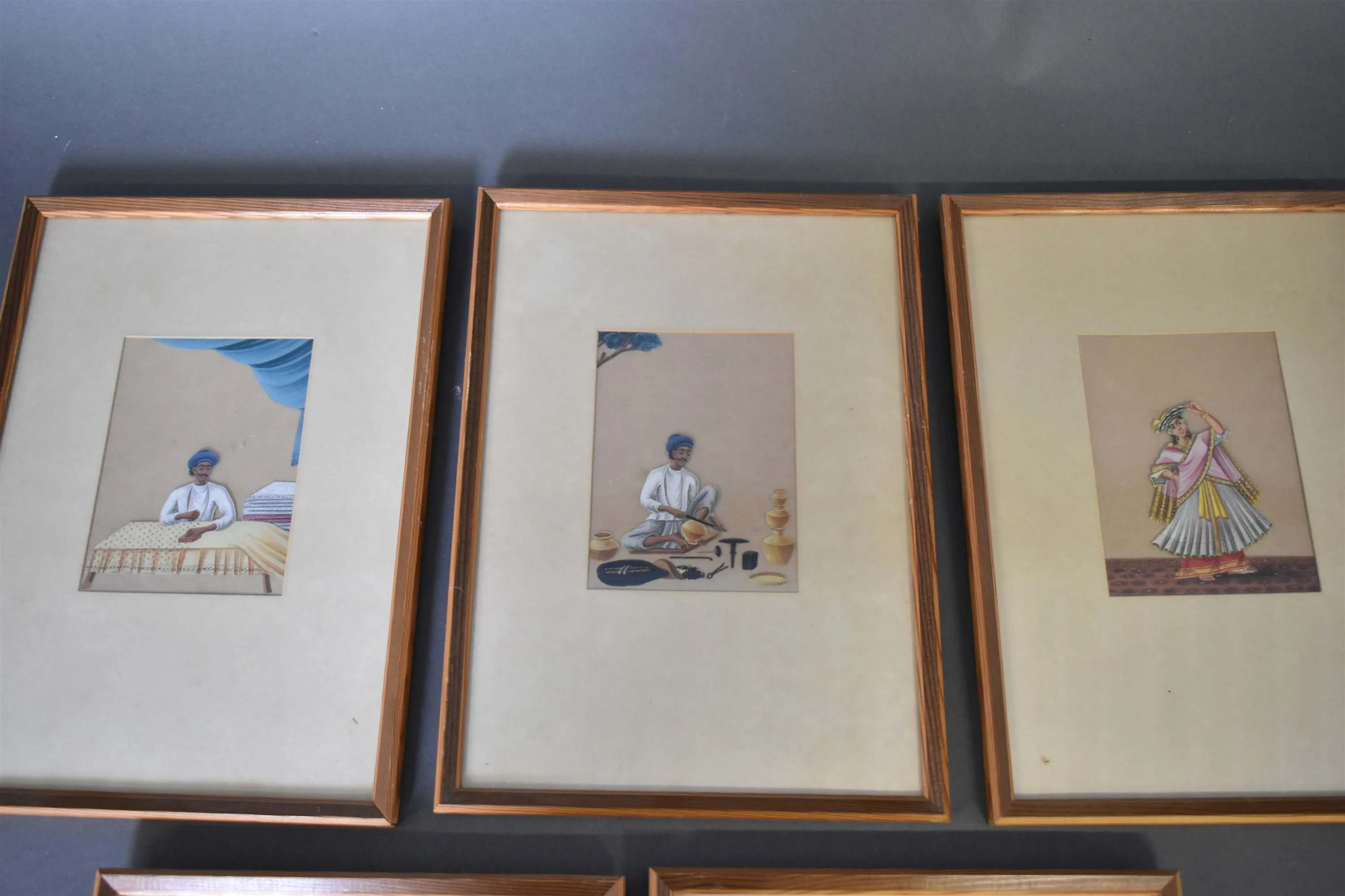 15578. Tavlor 5 st, Indiska motiv, akvarell/glas, mått 31 x 22 cm