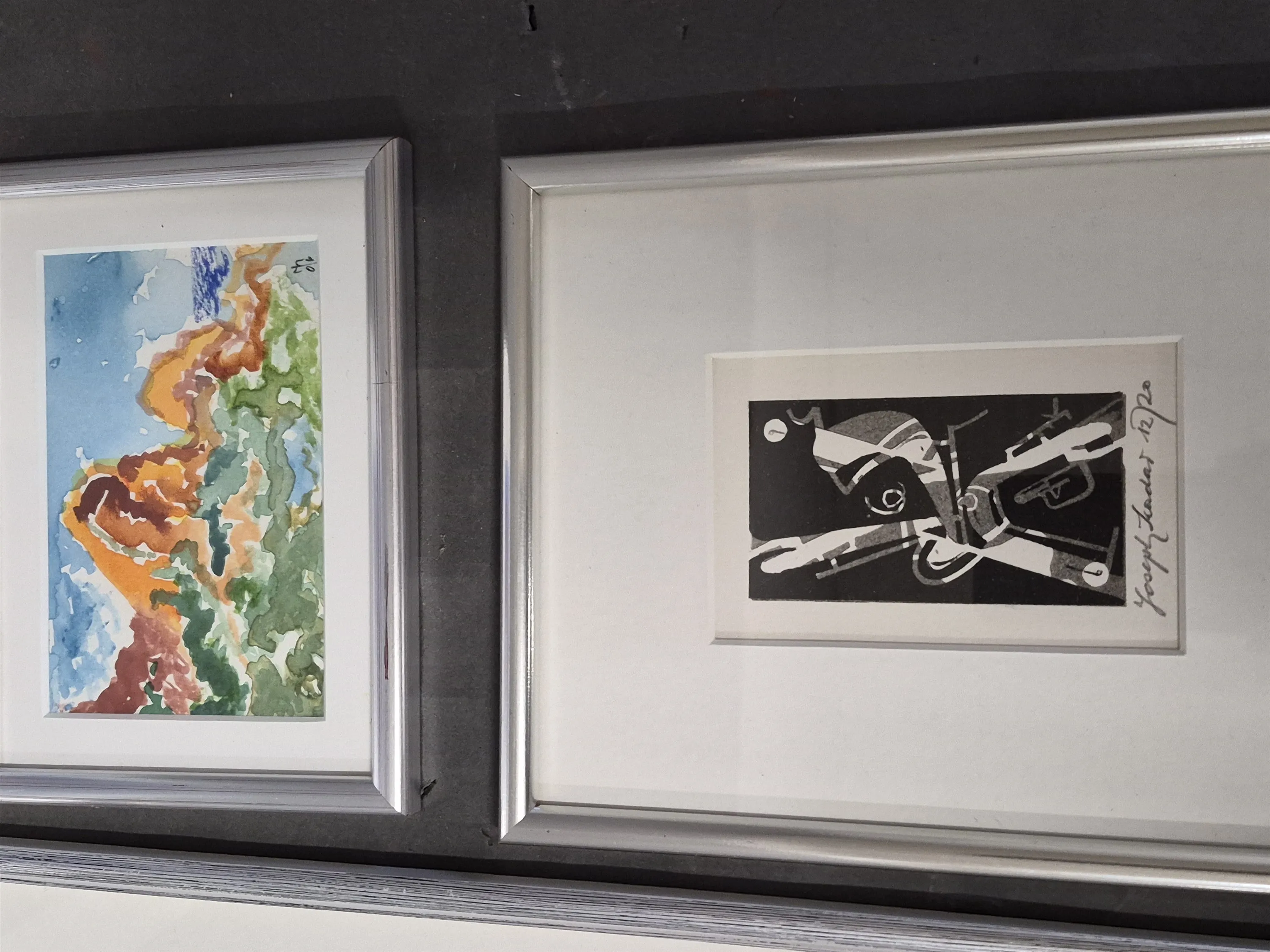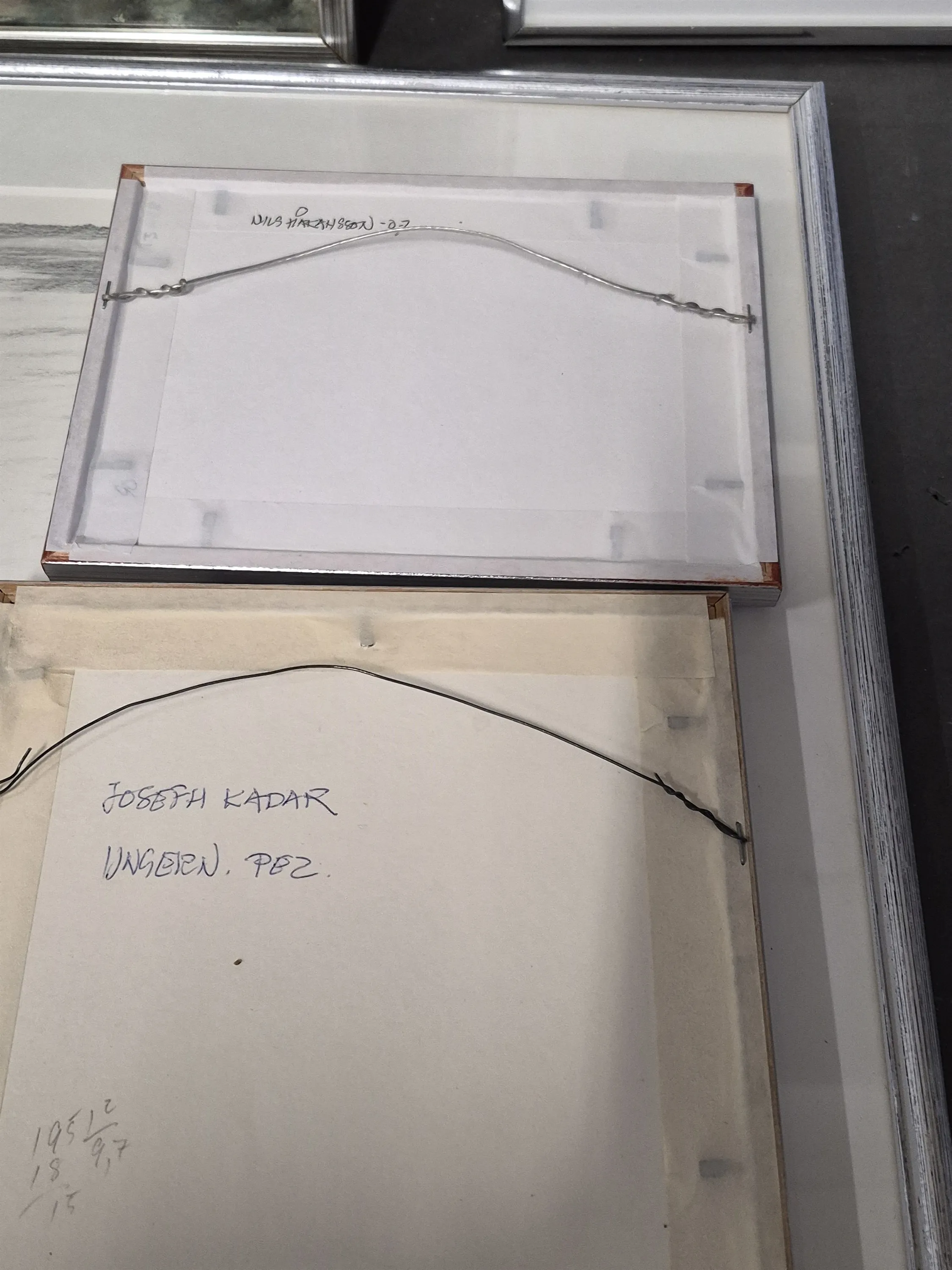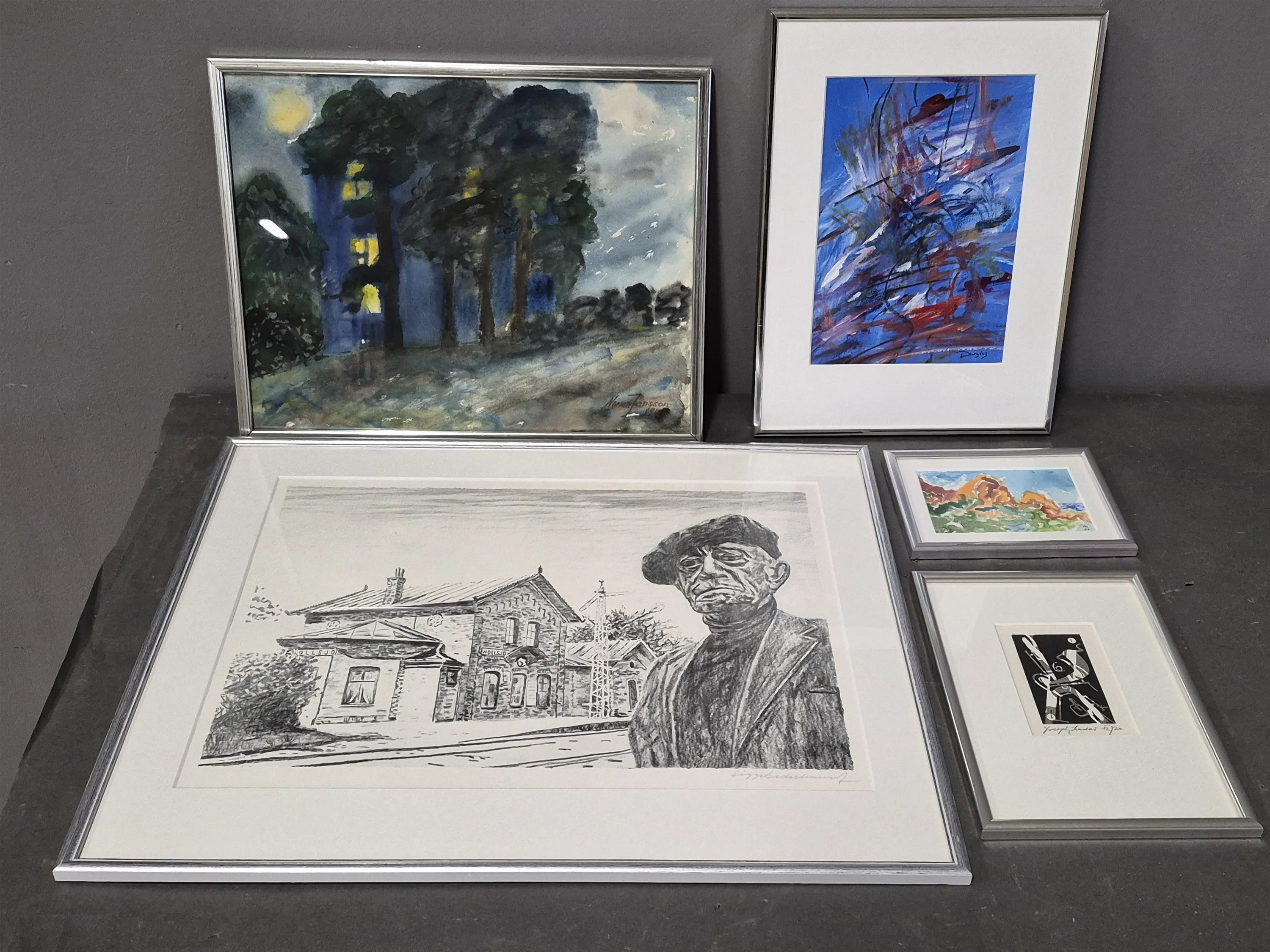 19076. Tavlor 5 st, olja, akvarell & litografi största 66 x 50 cm