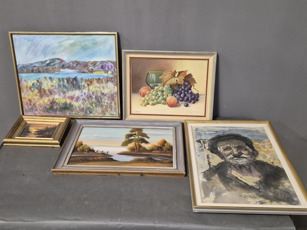 19075. Tavlor 5 st oljor & batik största mått 64 x 45 cm