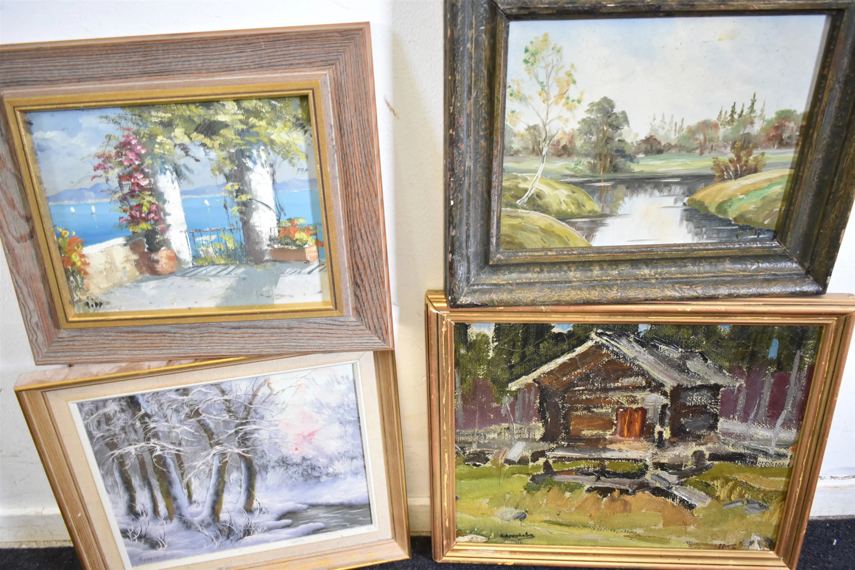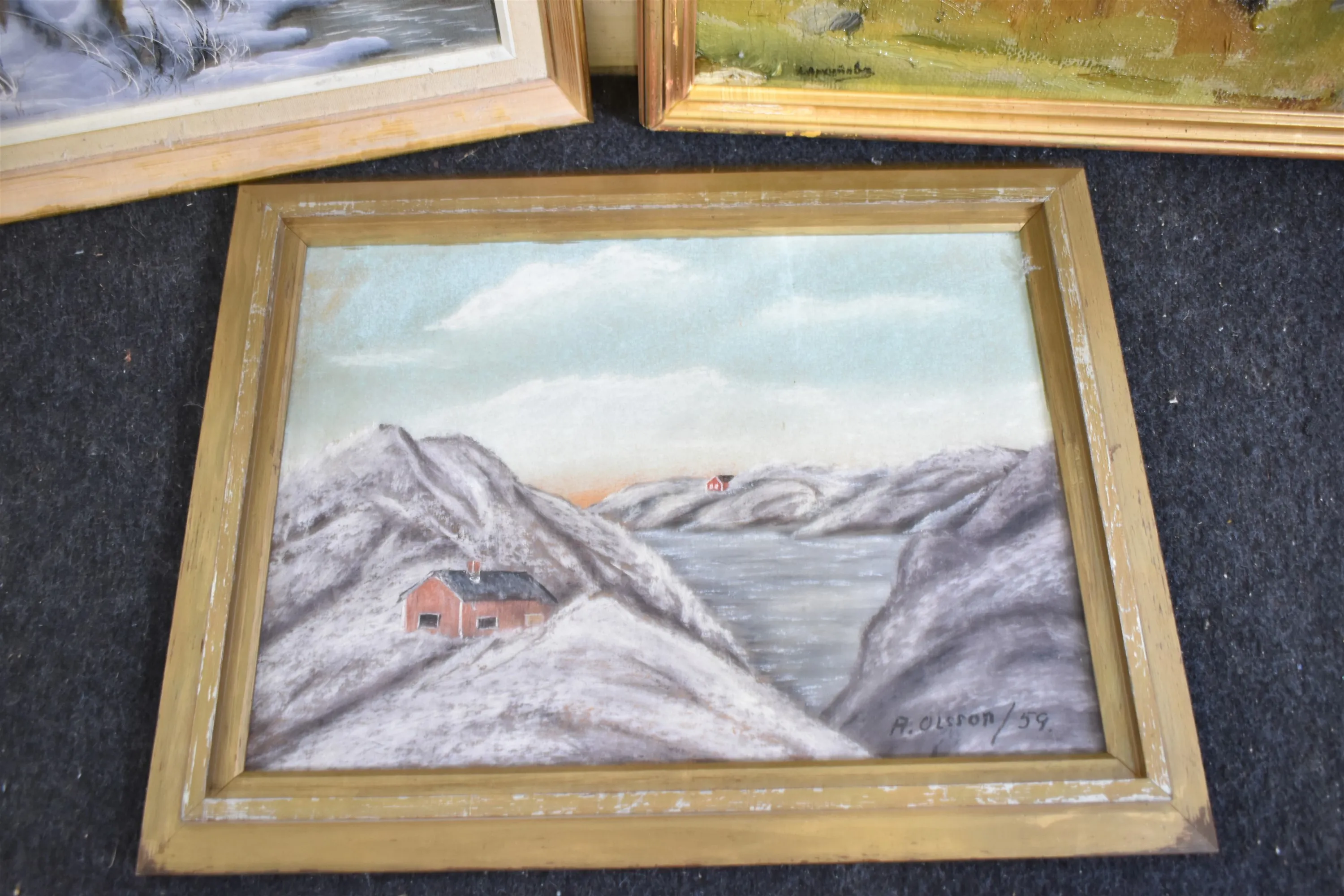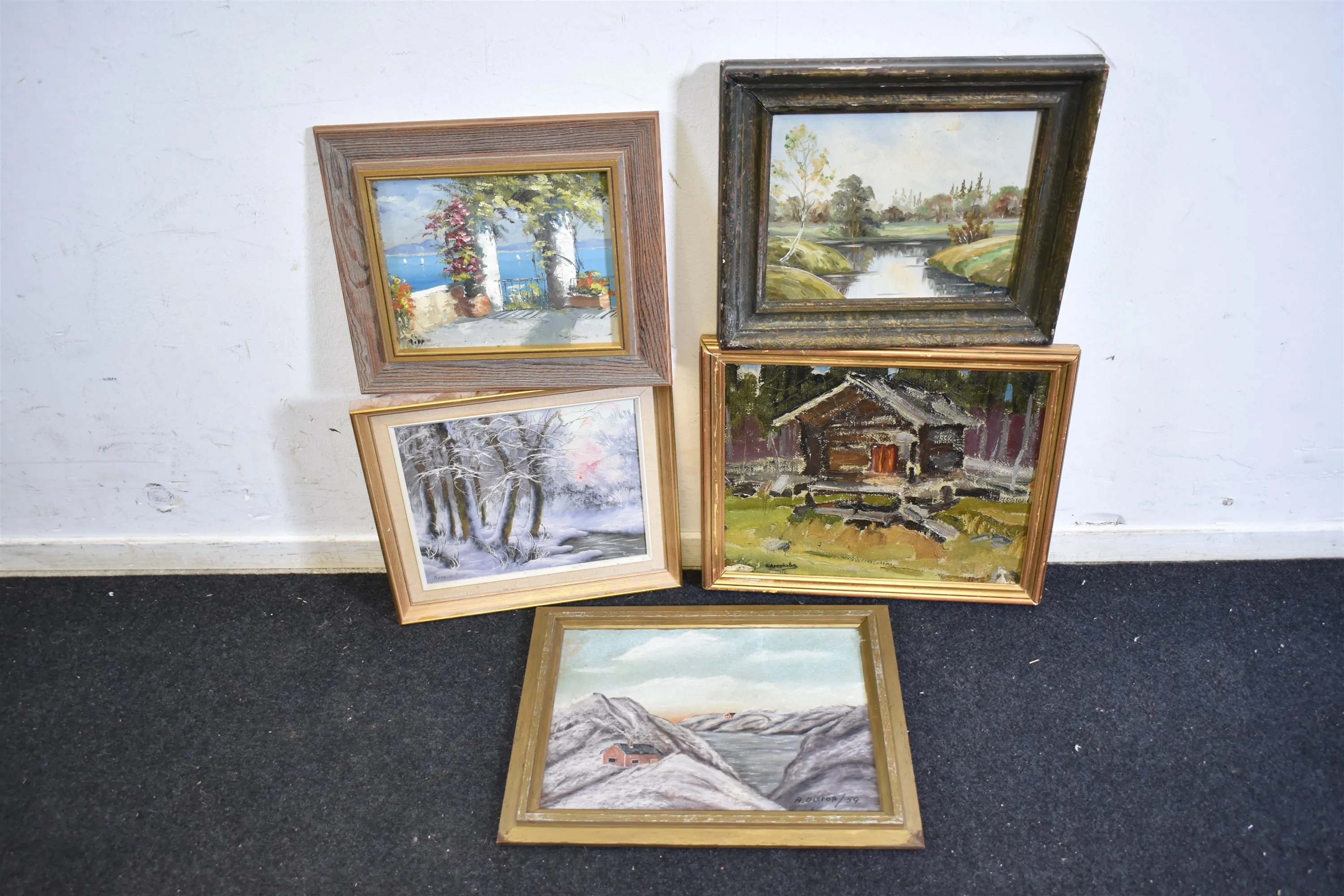 15295. Tavlor 5 st oljor, största mått 45 x 38 cm