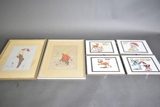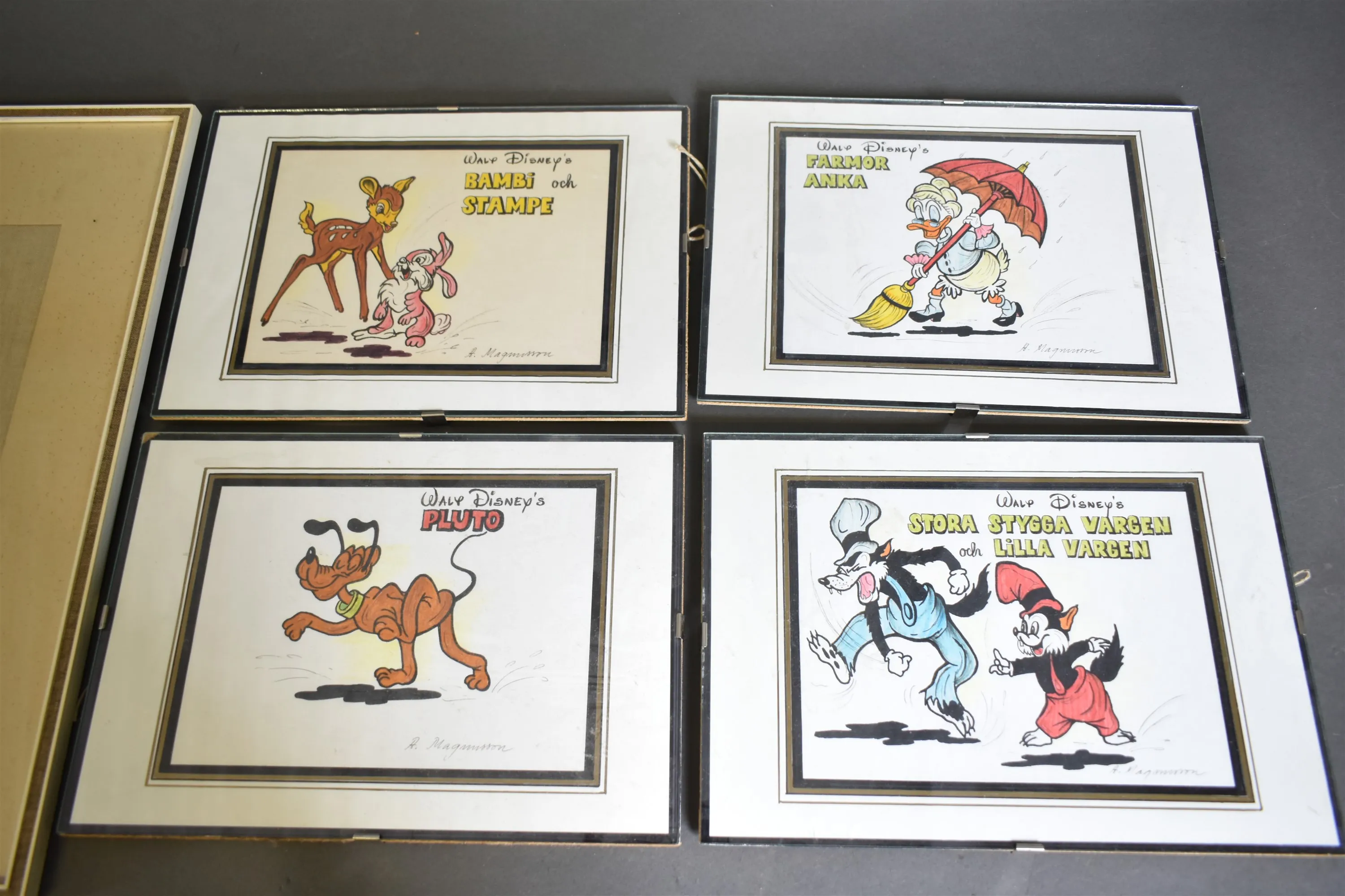 13957. Tavlor 6 st bl.a Walt Disney teckningar signmerade A.Magnusson