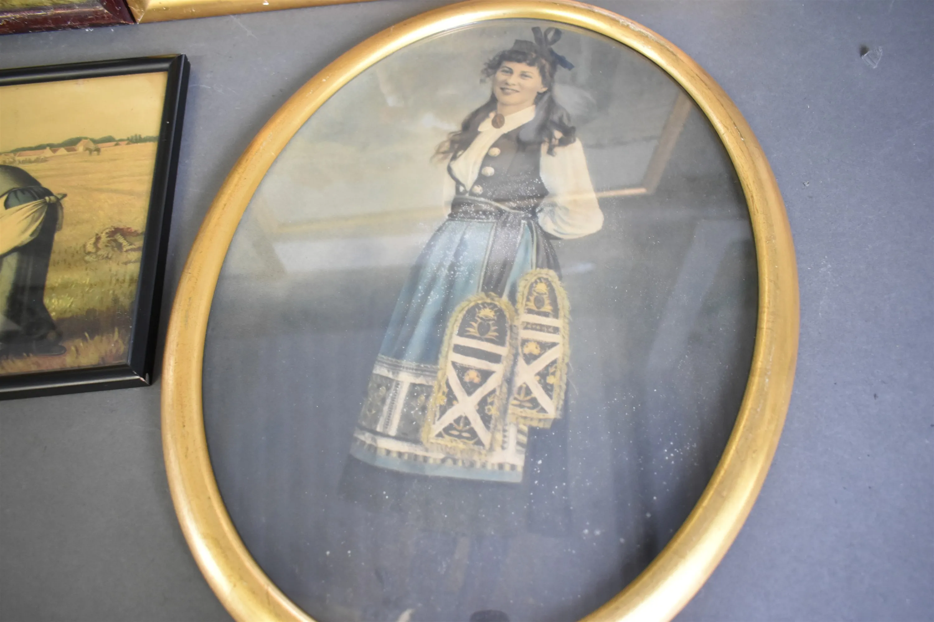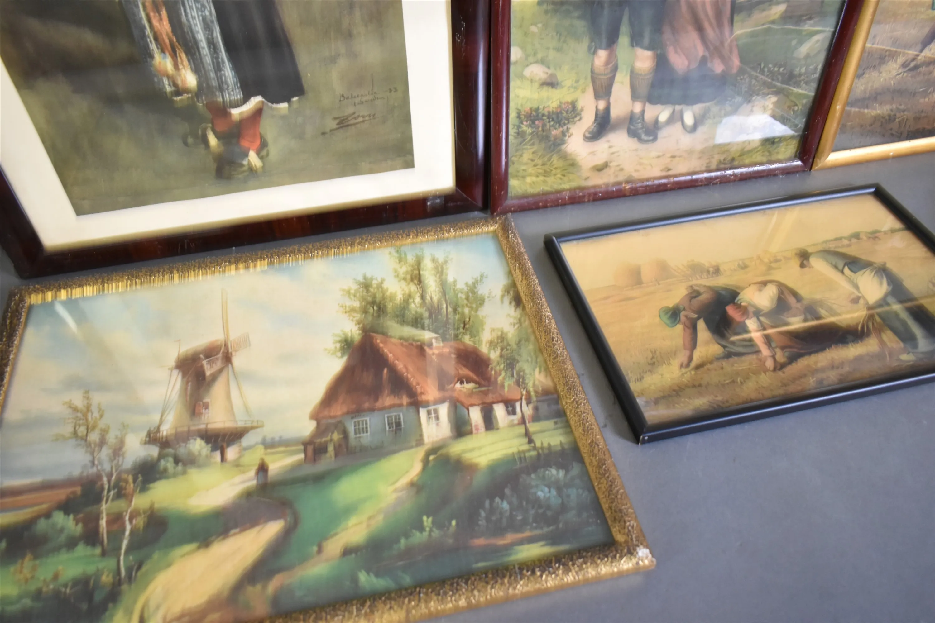 12866. Tavlor 6 st bla oljetryck, största mått 56x45 cm