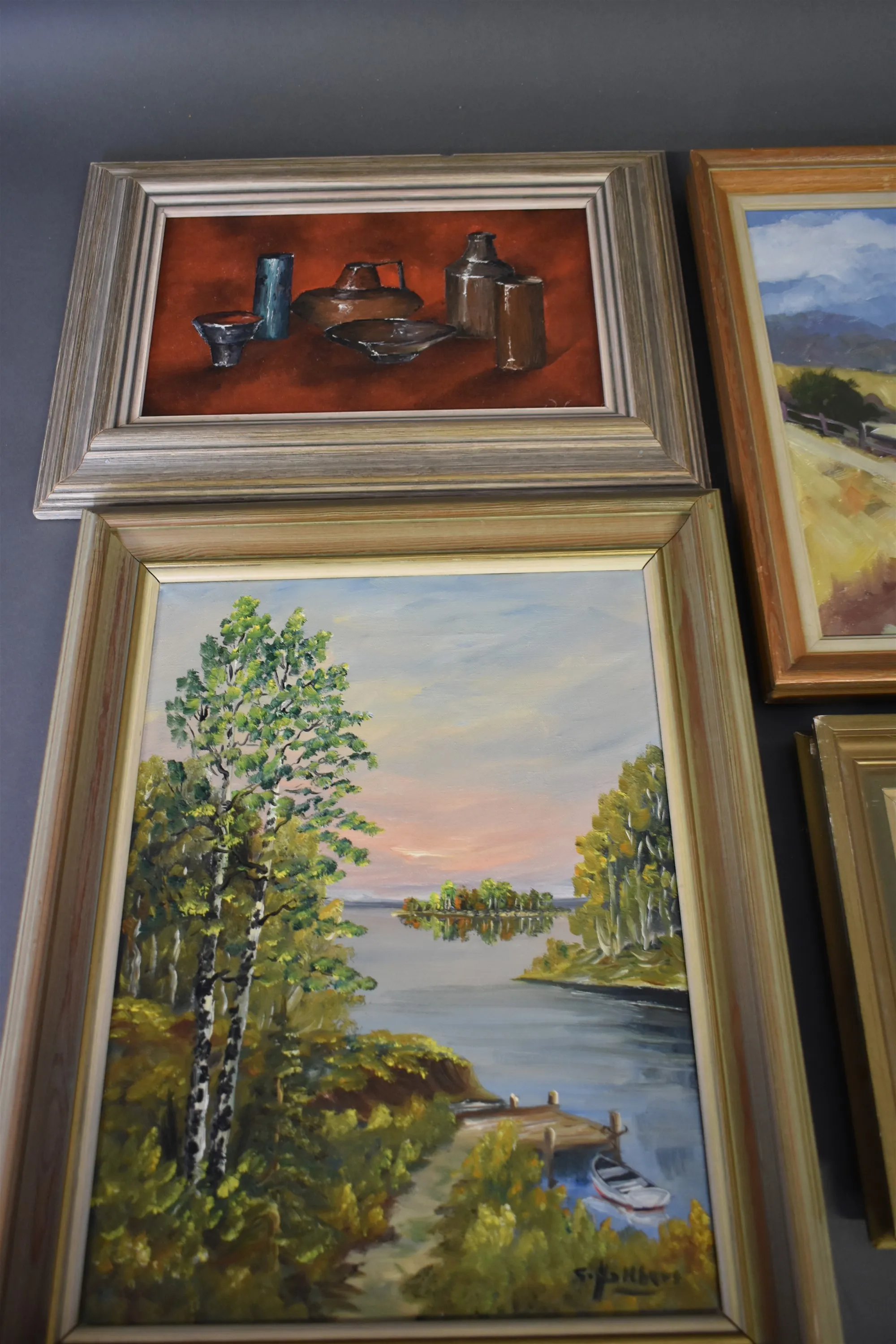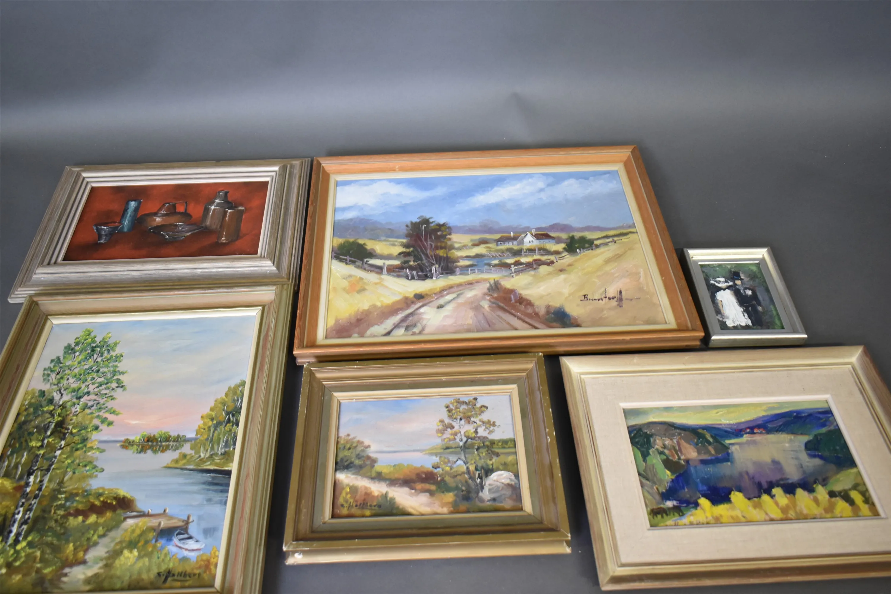 15064. Tavlor 6 st oljor, största mått 57 x 43 cm