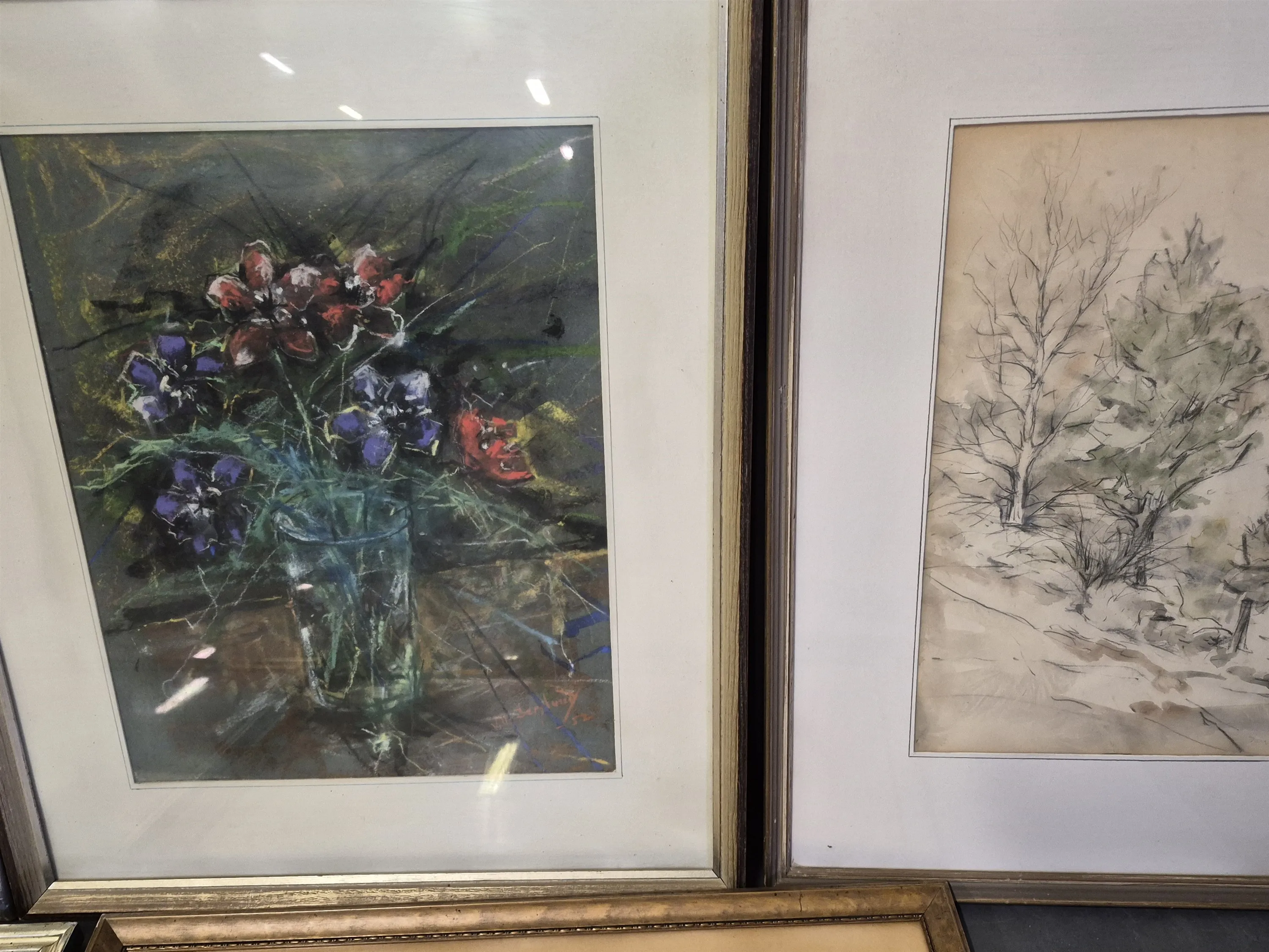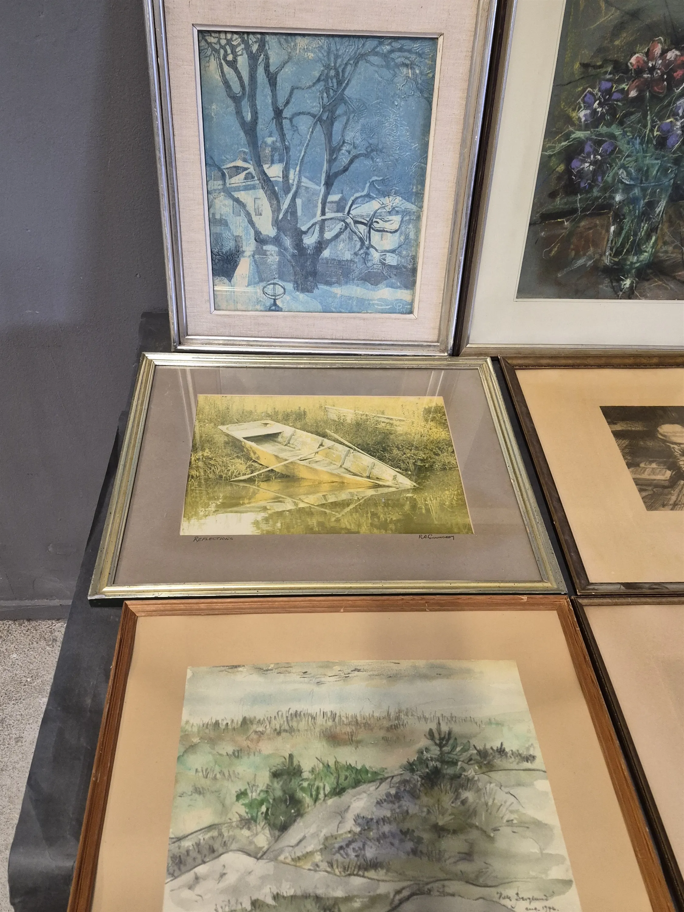 19193. Tavlor bl.a etsningar, pasteller & akvareller största mått 55 x 47 cm