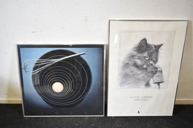 16744. Tavlor tryck 2 st bla Lasse Åberg "Katt & mus", största mått 85x61 cm
