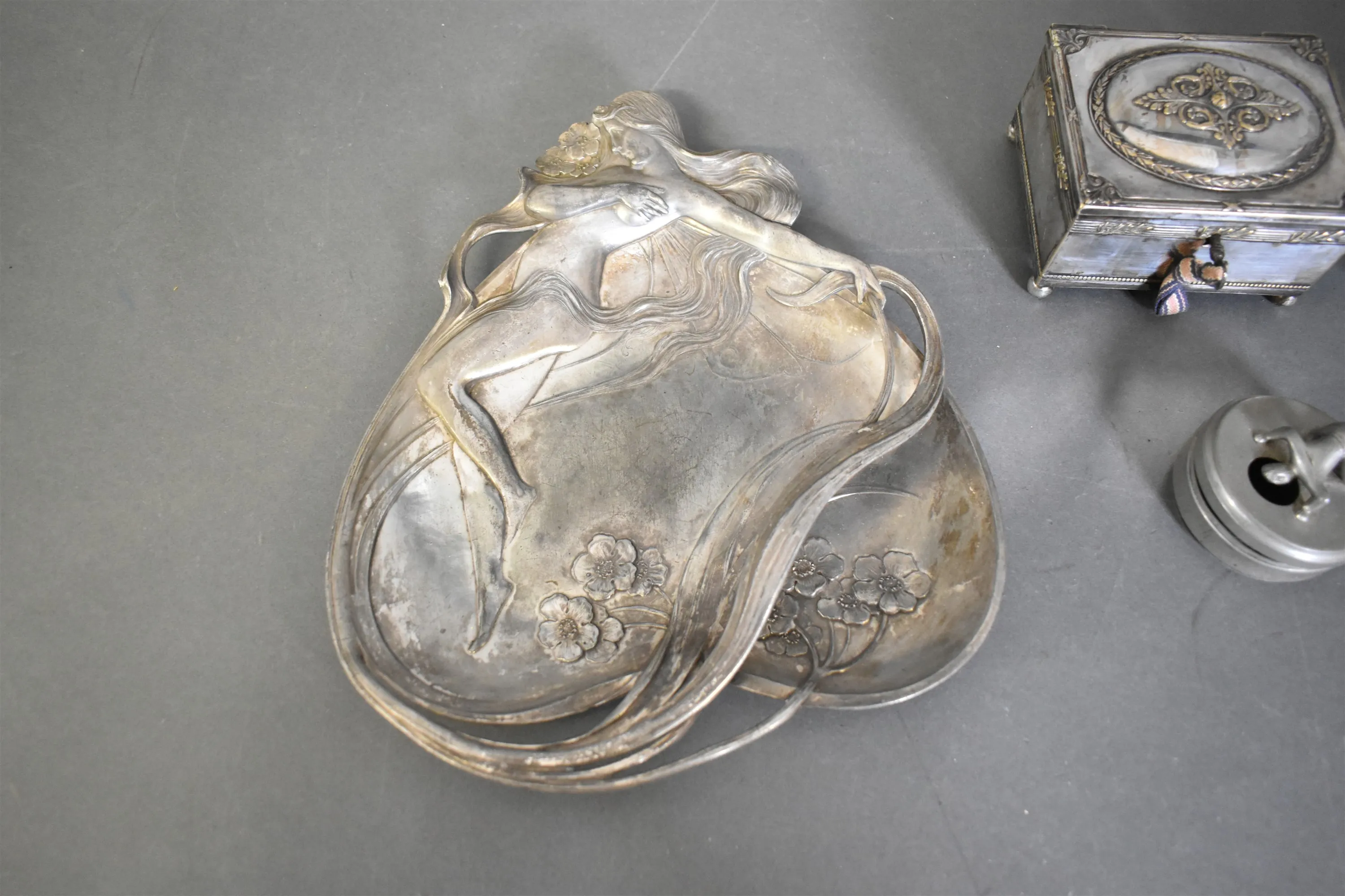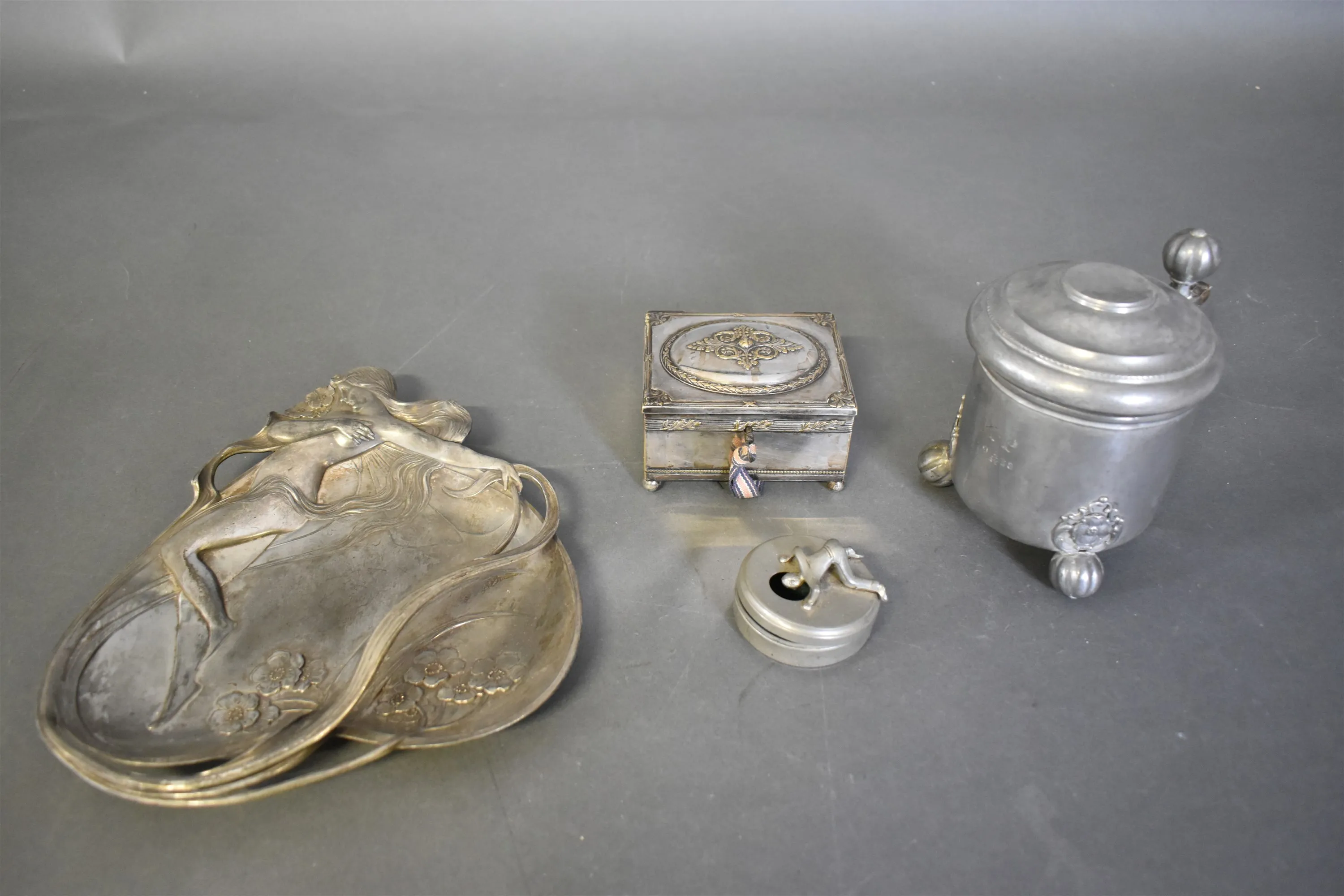 9221. Tennföremål bl.a Jugendfat, längd på fat 26 cm