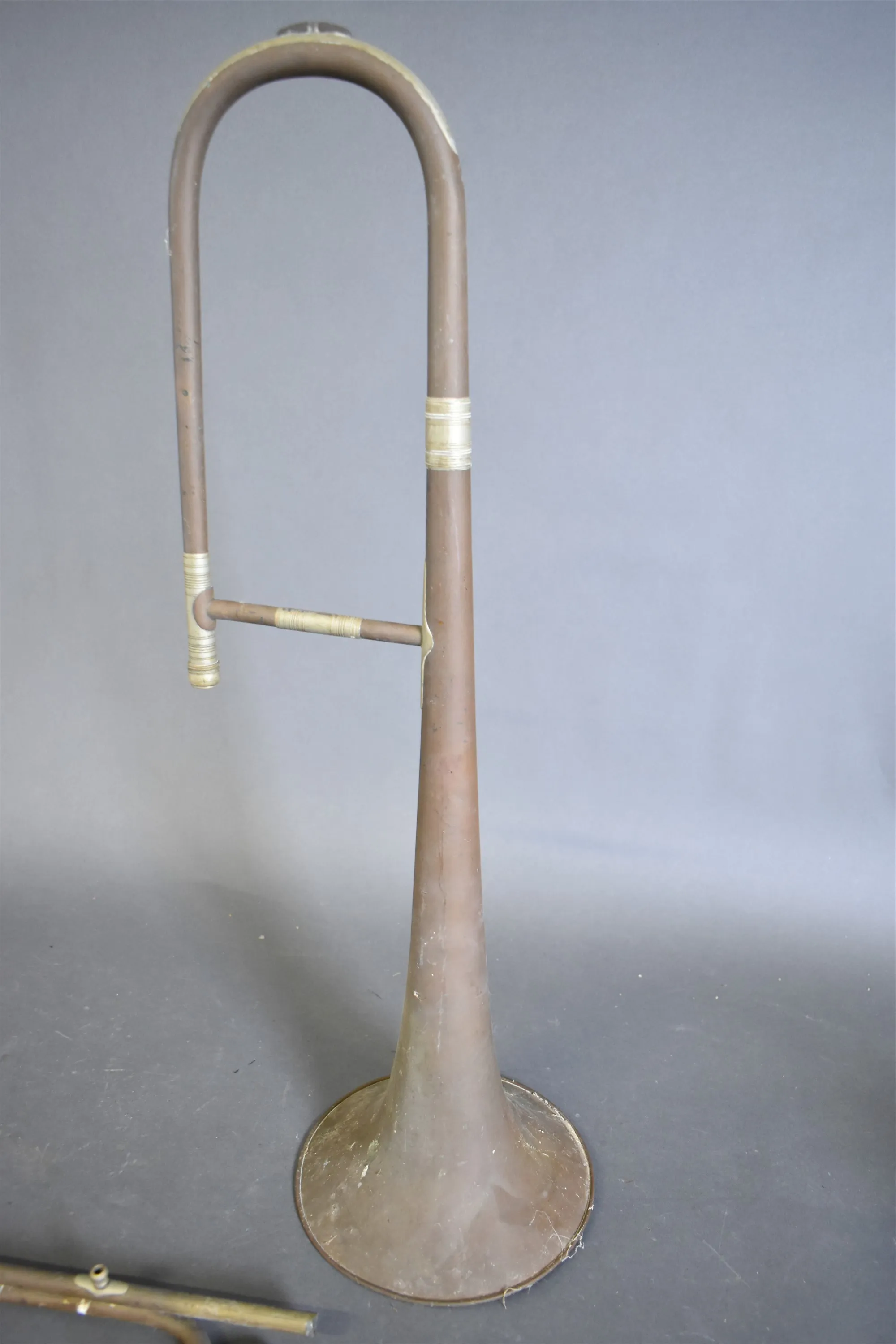 12622. Tenortrombon, koppar, ej komplett, längd ca 75 cm