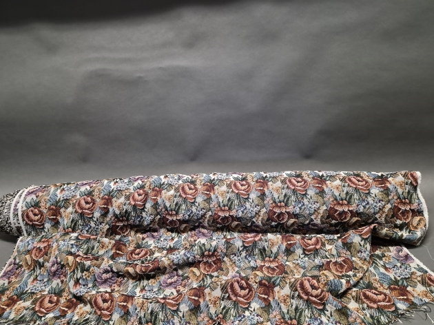 19355. Textilierulle med blommotiv, bredd 134 cm, lukt finns