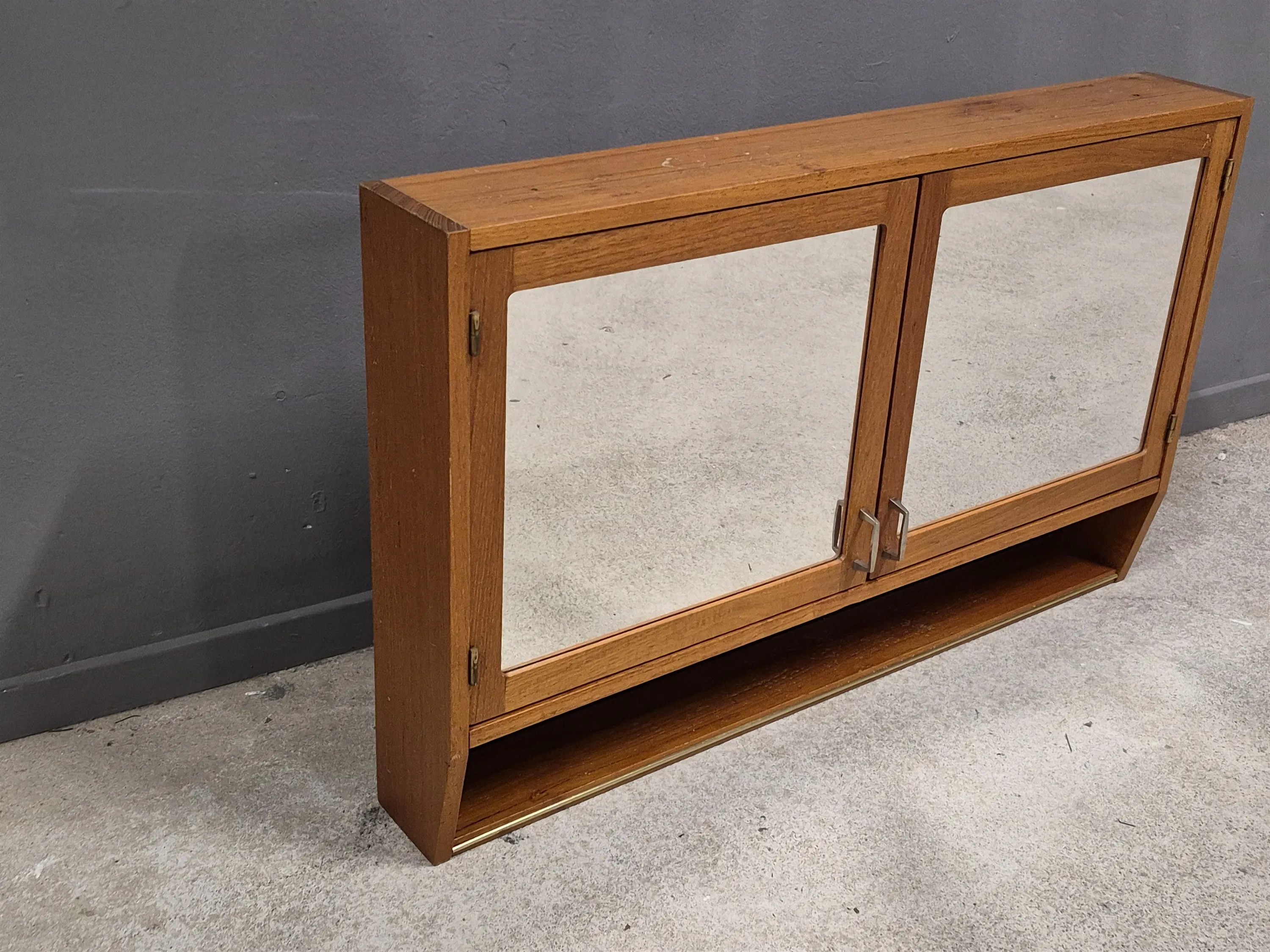 17182. Toalettskåp, teak, höjd 53 x 85 cm, djup 12 cm någon fläck finns på ovandelen
