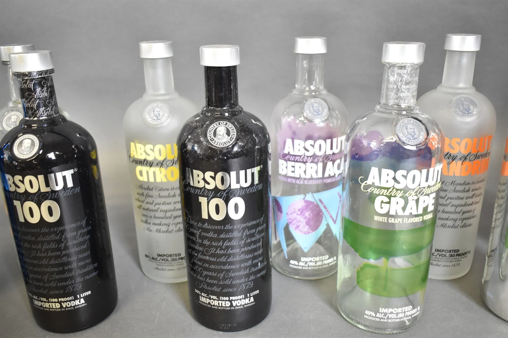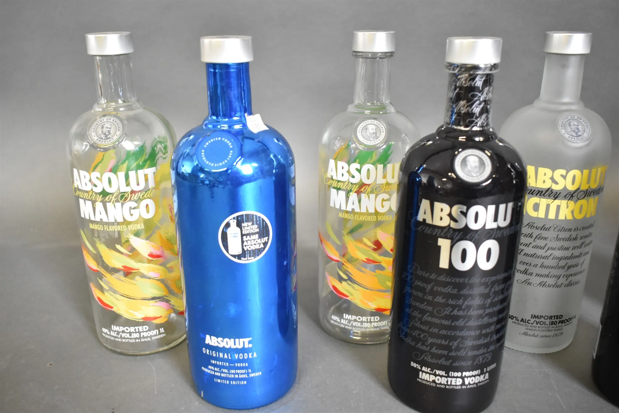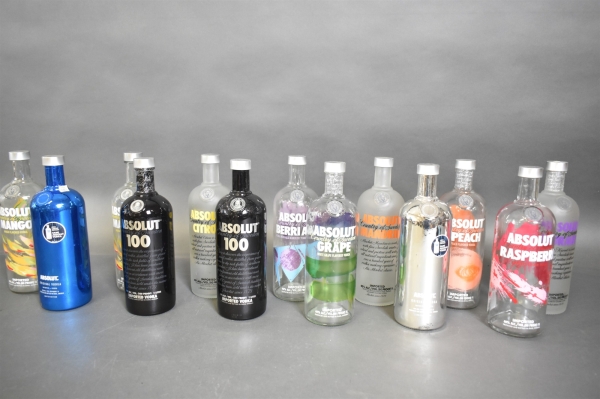10567. Tomflaskor, Absolut Vodka glasflaskor bla limited edition, höjd 28 cm