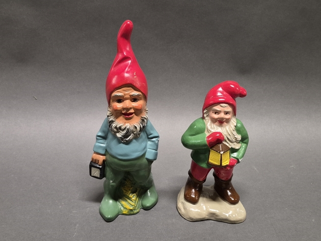 19375. Tomtar 2 st, keramik/gips, bl.a märkt West Germany högsta 32 cm