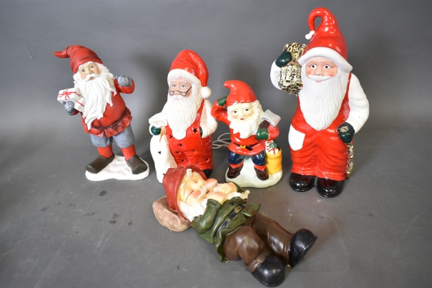 12337. Tomtar 5 st, gips & keramik, konstmassa, högsta 50 cm