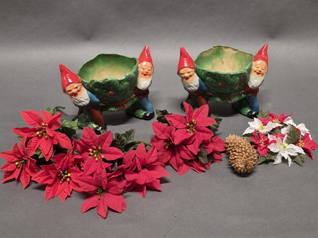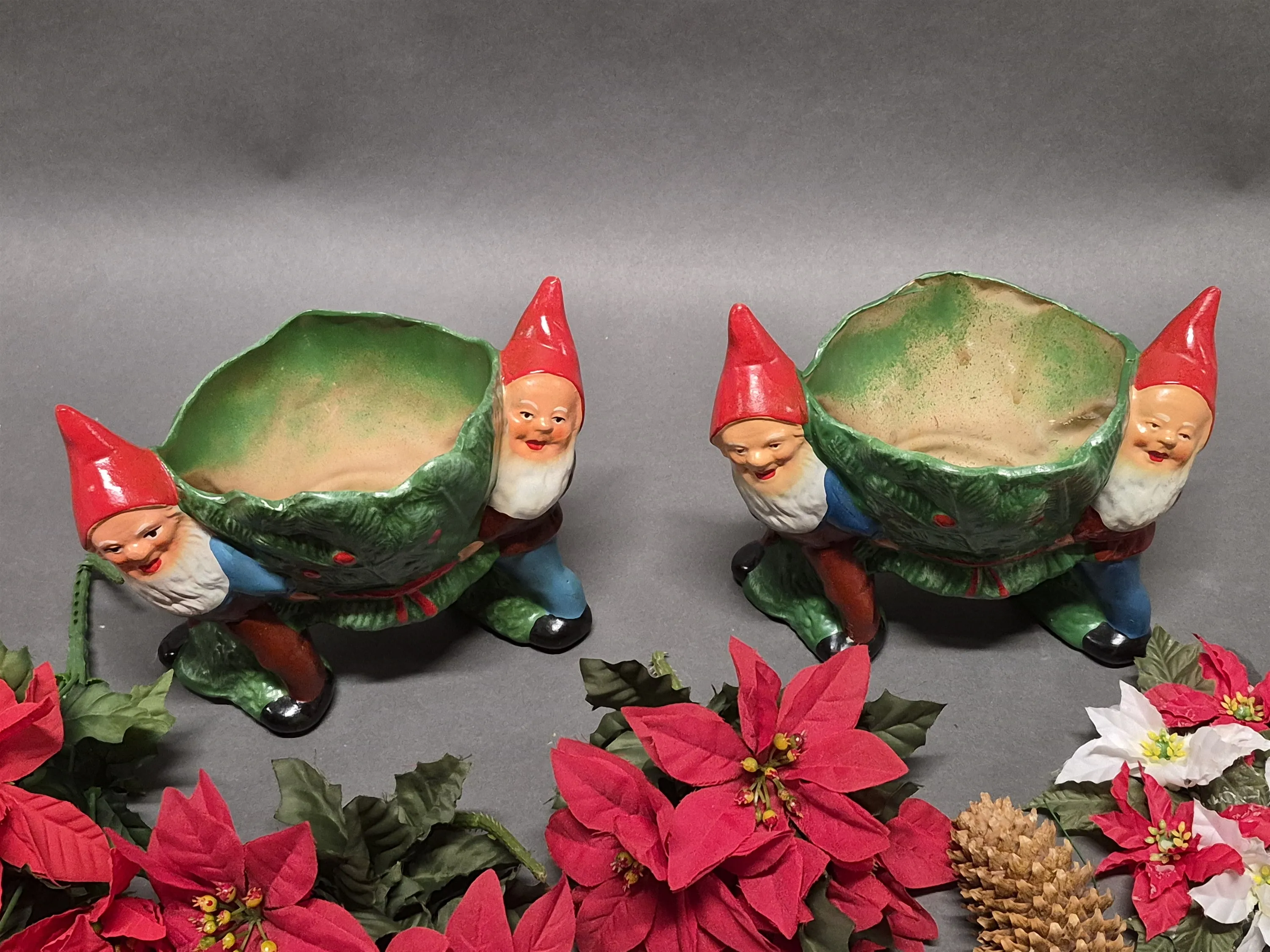 17334. Tomtekrukor 1 par keramik höjd 17 cm, nagg på en