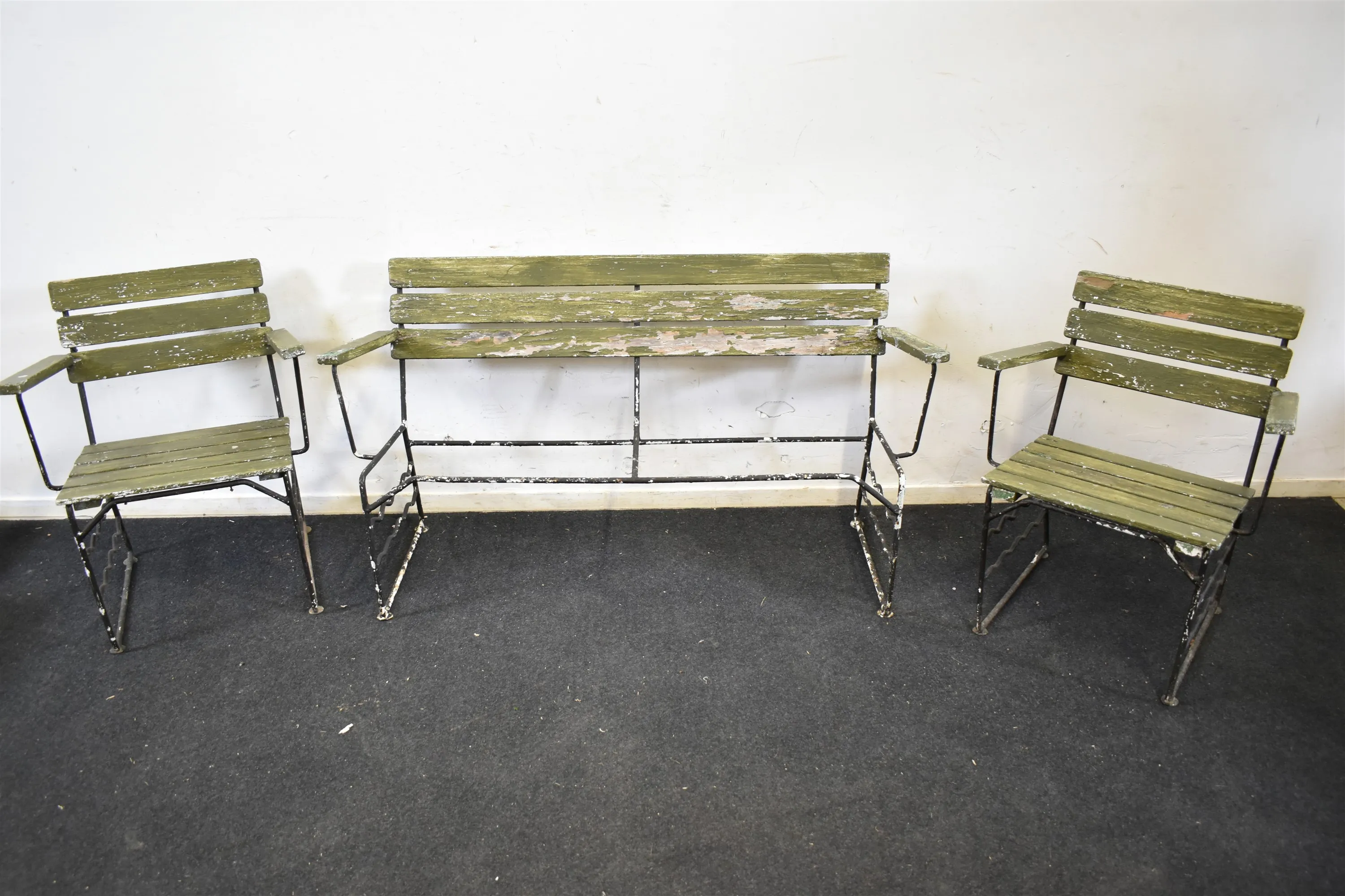 12886. Trädgårdgrupp 3 del, metall/trä, renoveringsobjekt, längd på soffa 160 cm