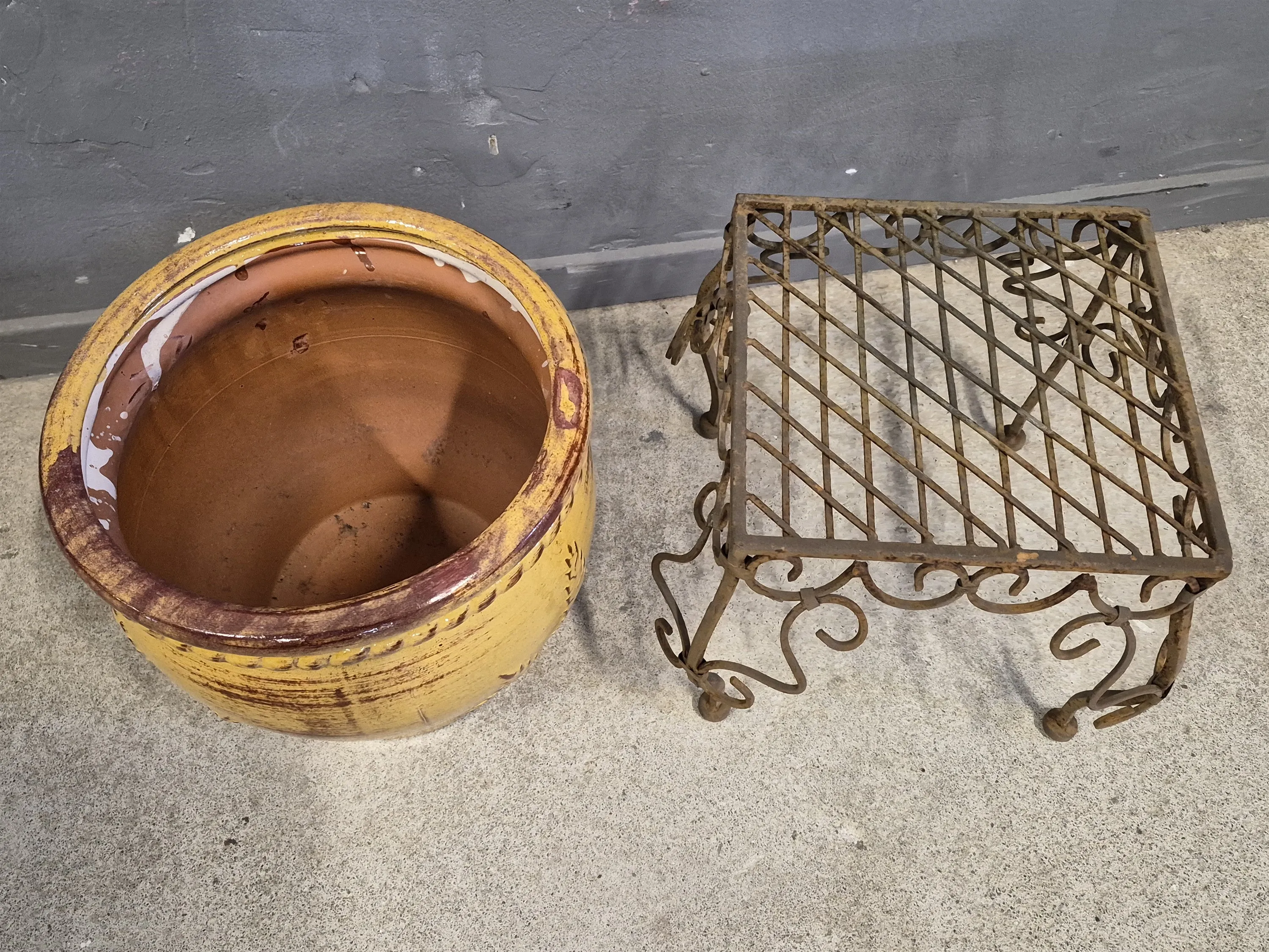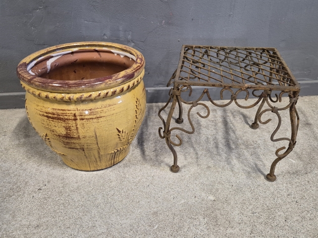 20594. Trädgårdskruka & piedestal metall högsta 27 cm