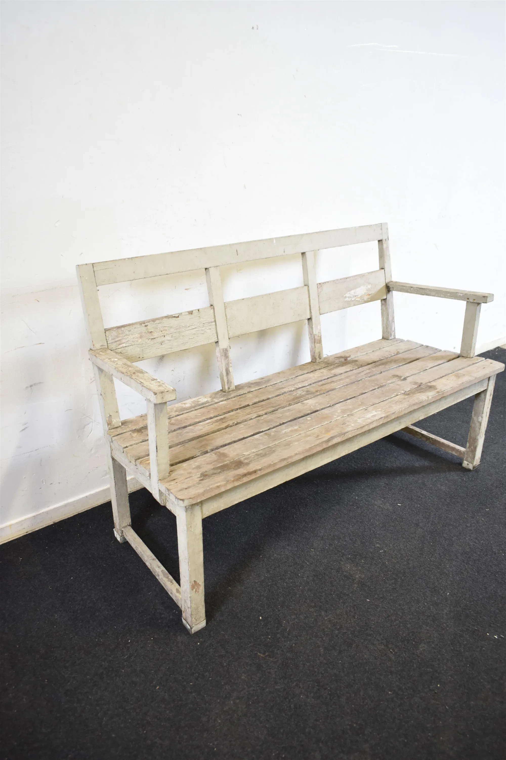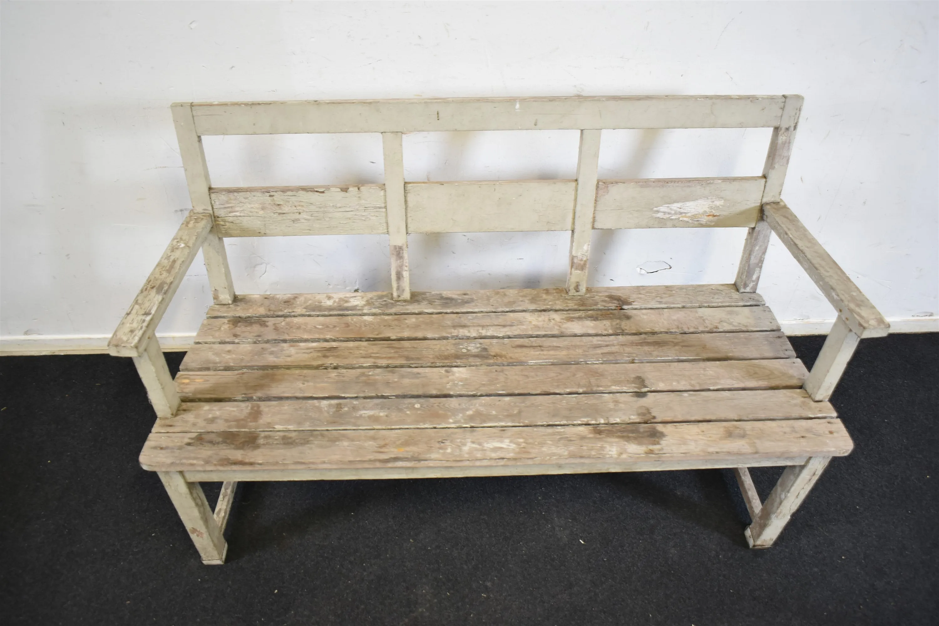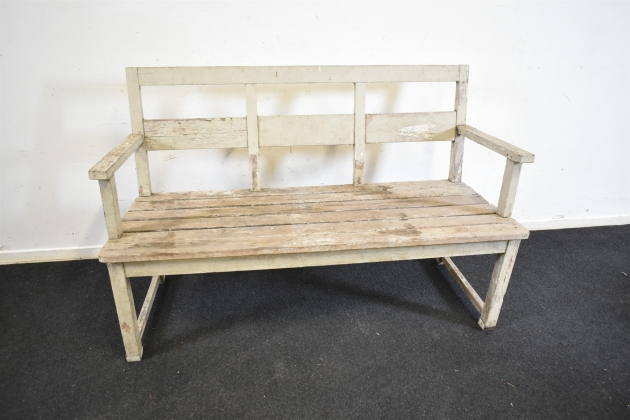 13425. Trädgårdssoffa, med metallkoppar på benen, färgskav, höjd 90 cm, längd 144 cm, djup 60 cm
