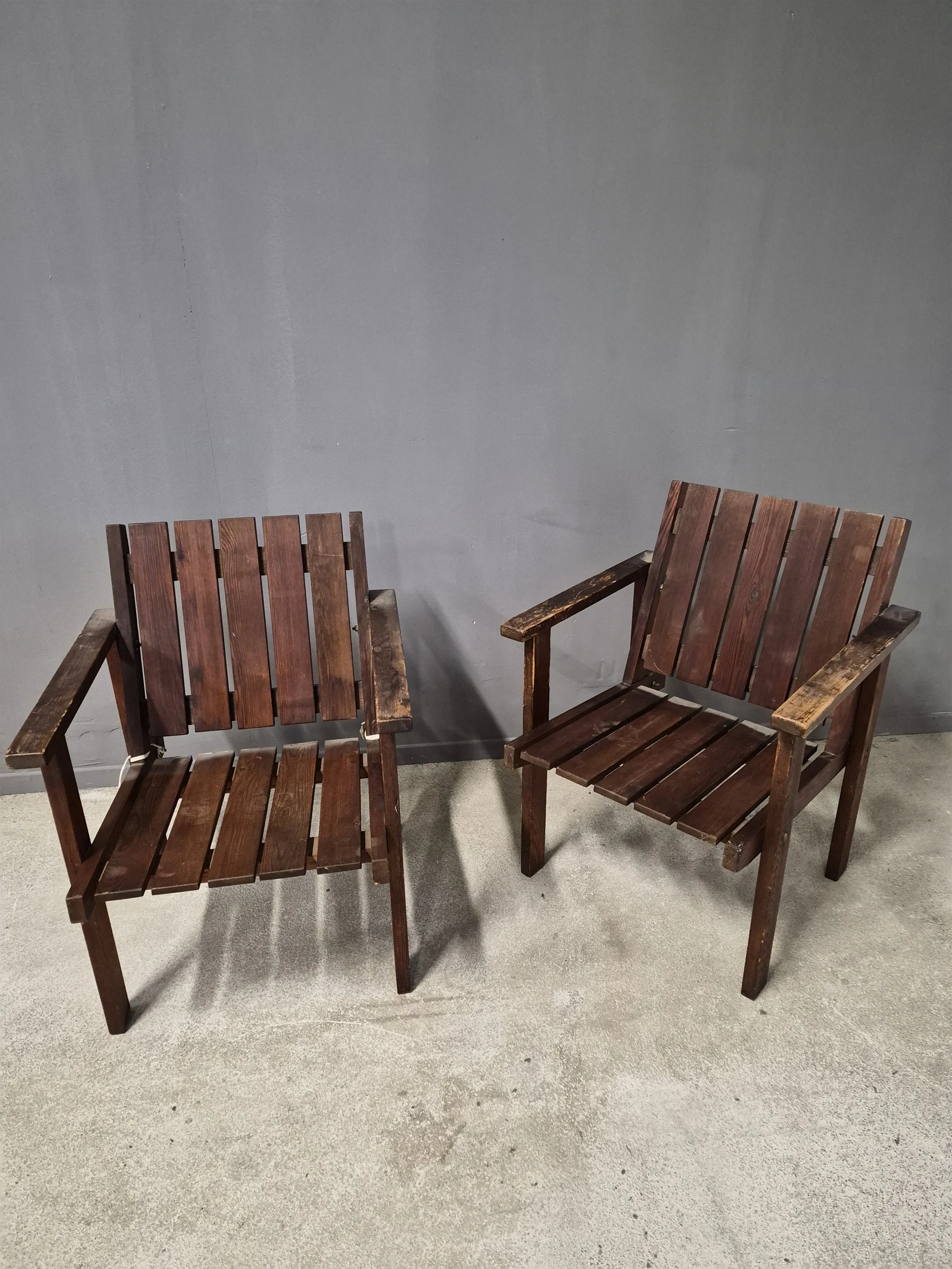 16900. Trädgårdsstolar 1 par betsad furu höjd 80 cm