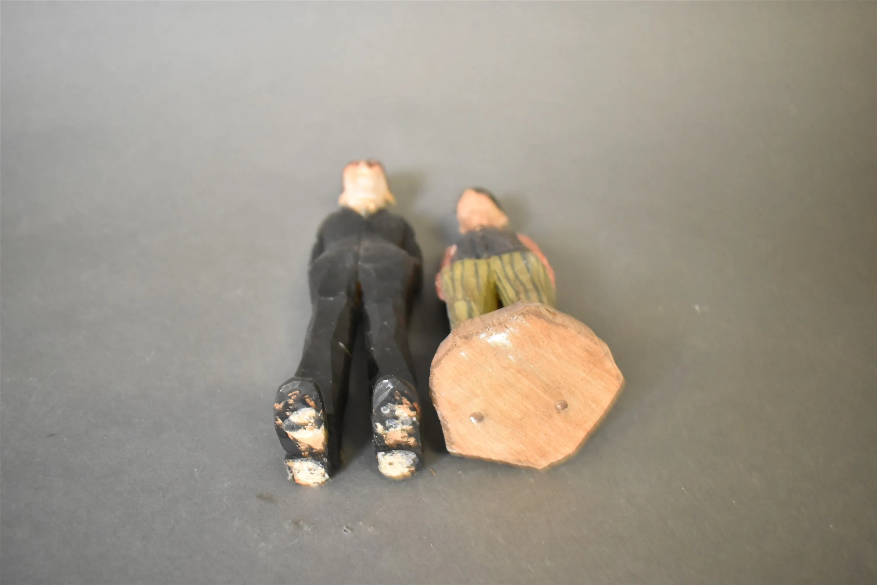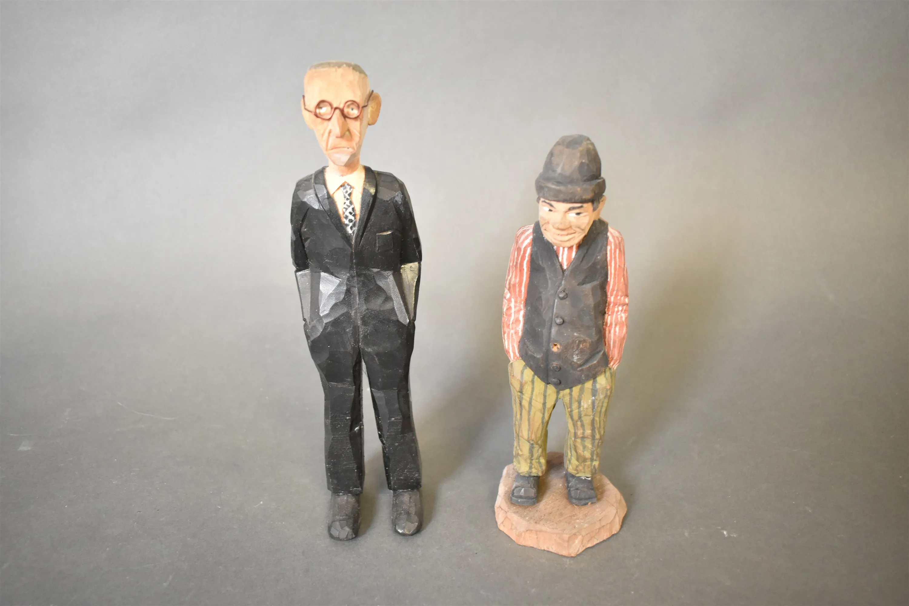 9307. Träfigurer 2 st, bl.a gubbe med glasögon, längsta 25 cm