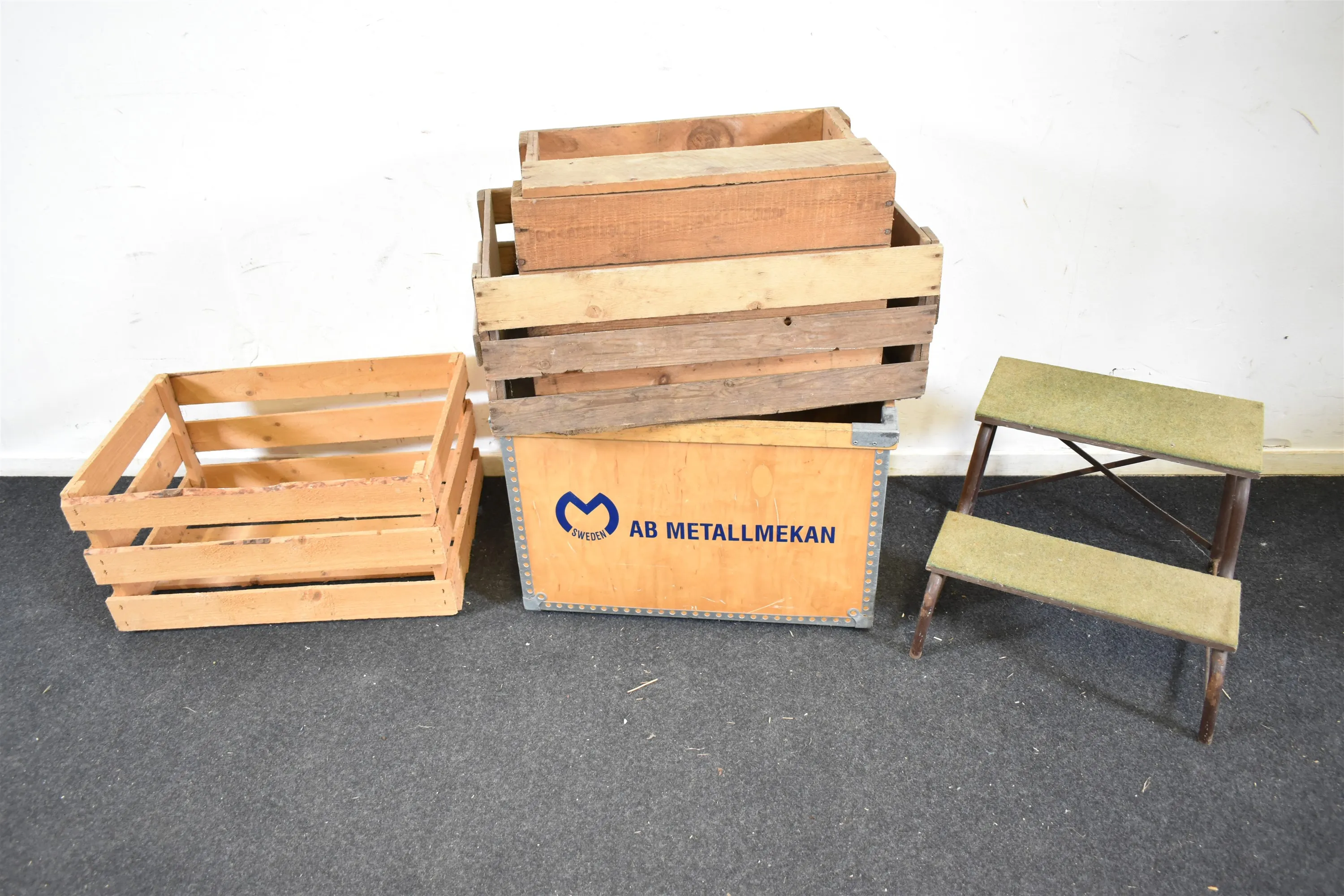 15968. Trälådor & trappall, högsta 43 cm