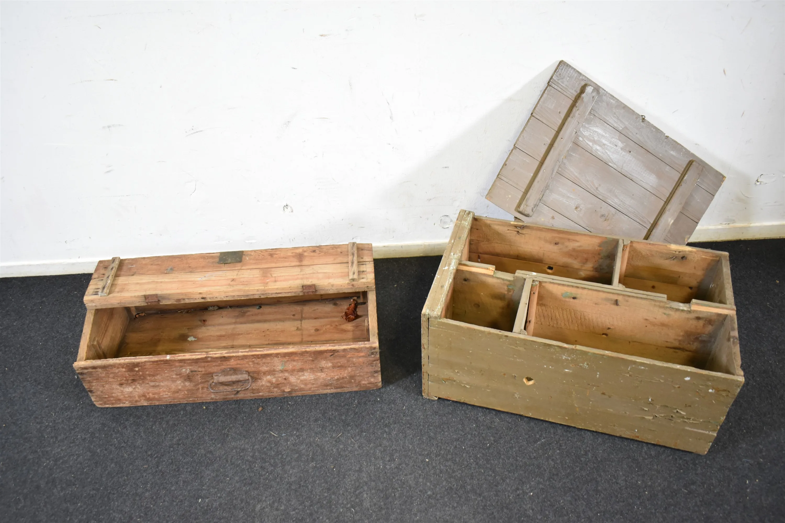 16039. Trälådor 2 st, längd 68 cm & 75 cm, ett lock löst