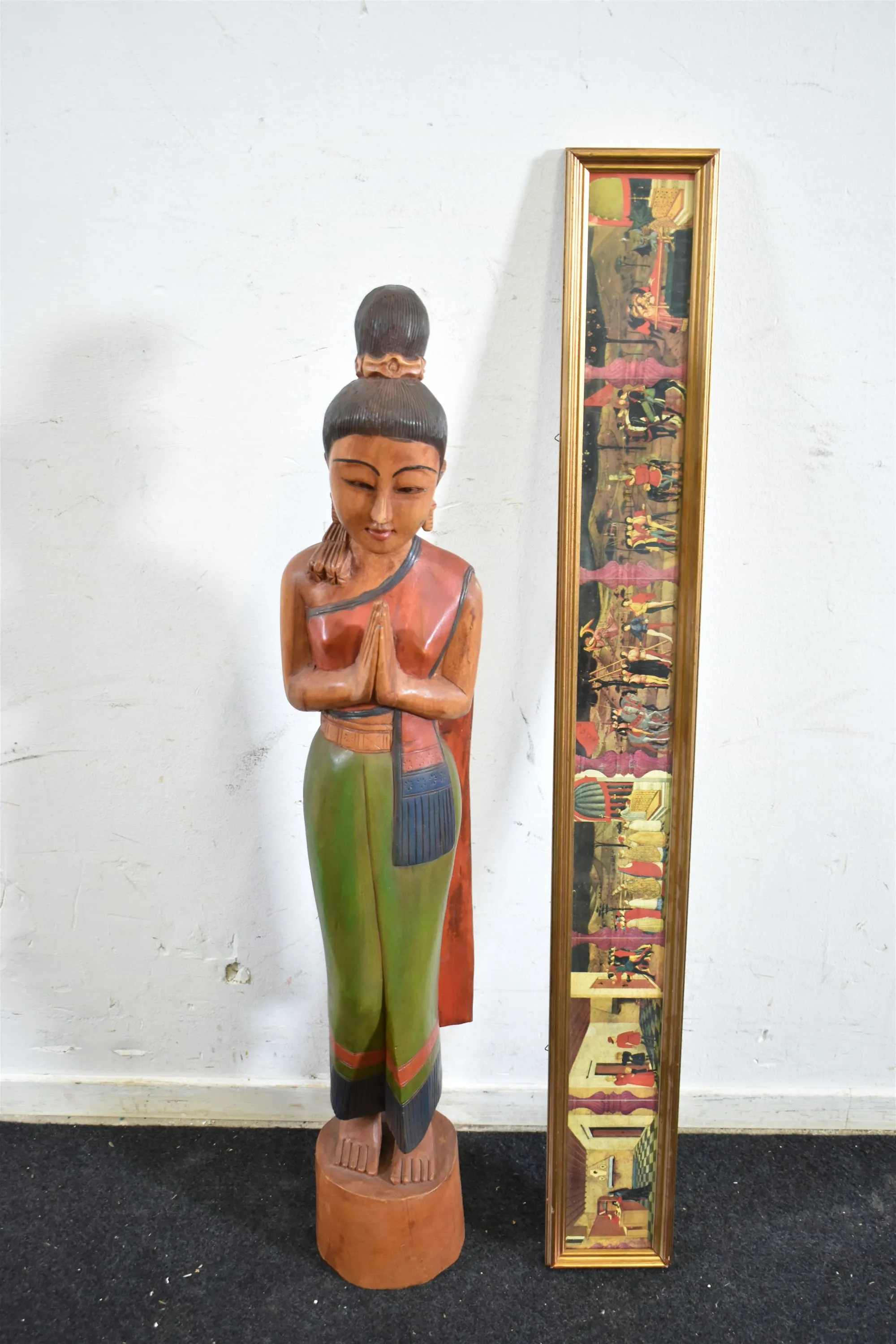 13345. Träskulptur kvinna och tavla, mått på tavla 111x13 cm