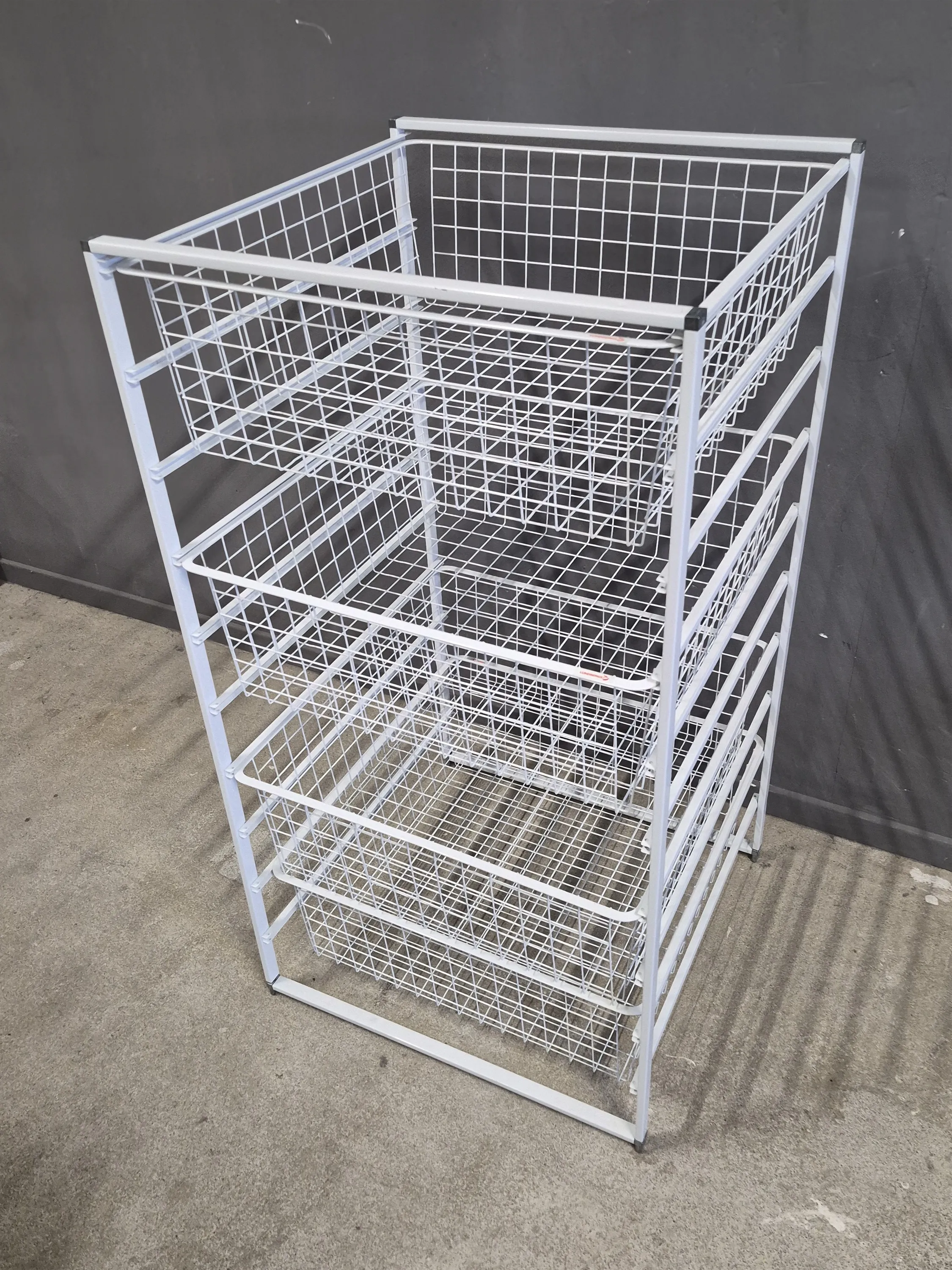 20598. Trådbackar med ställ 4 korgar, höjd 115 cm, 55 x 53 cm