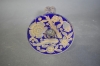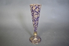9542. Trumpetvas blå & gulddekor, mässingsmontage, höjd 31 cm
