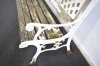 3210. Trädgårdsbänk med gjutjärnsgavlar, höjd 82 cm, längd 129 cm