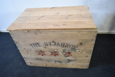 7240. Trälåda med lock, Säkerhetständstickor Tre stjärnor höjd 63 cm mått 88 x 58 cm
