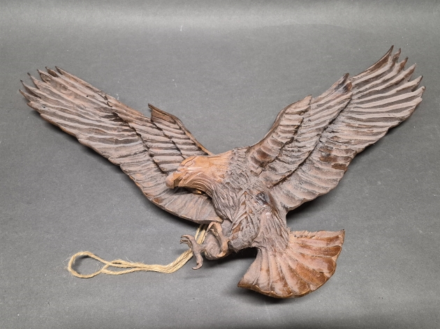17808. Träskulptur, Örn signerad Oregon USA, bredd 62 cm