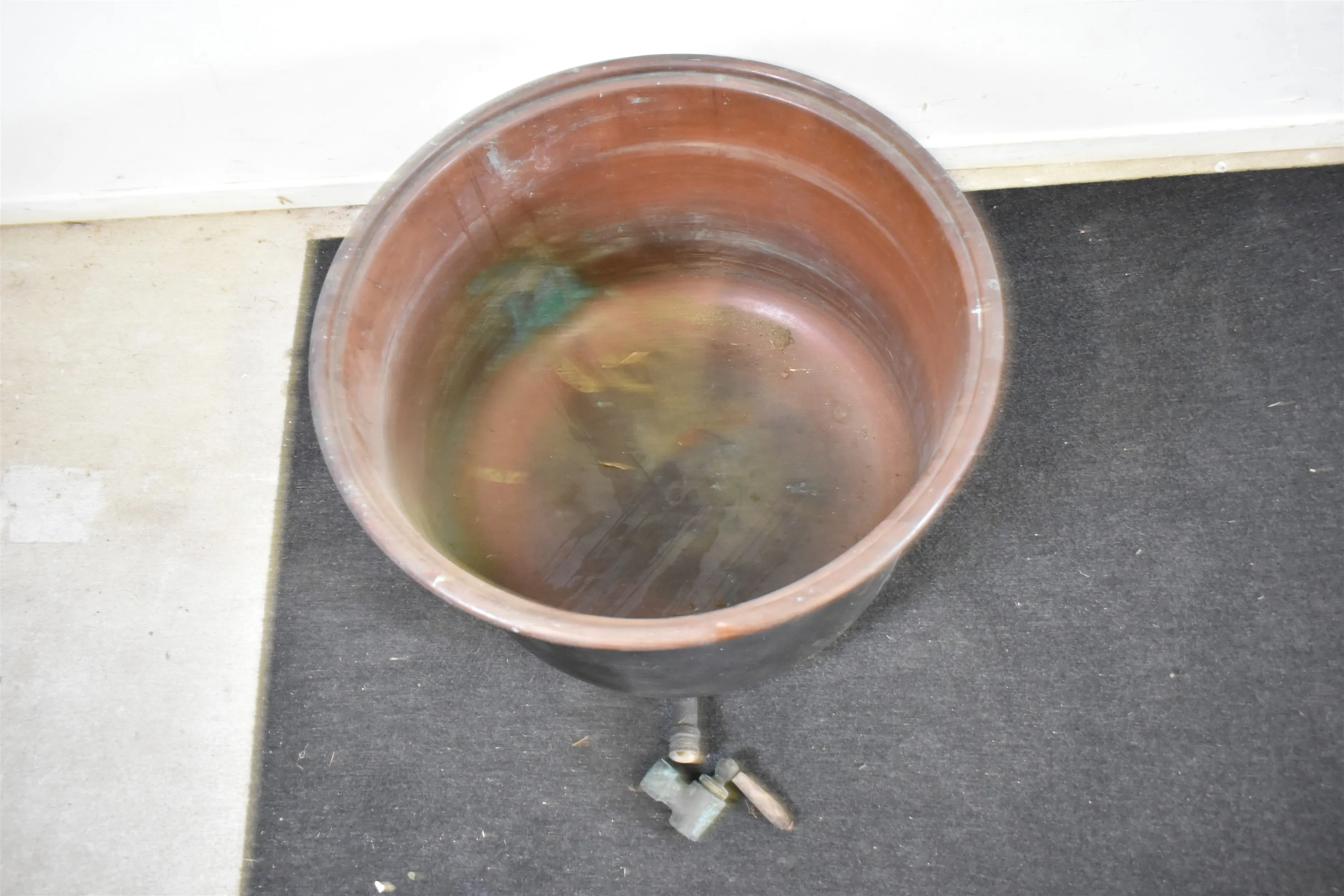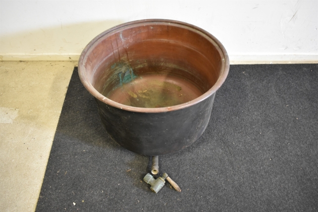 15683. Tvättbalja med tappkran, koppar höjd 43 cm, diameter 63 cm