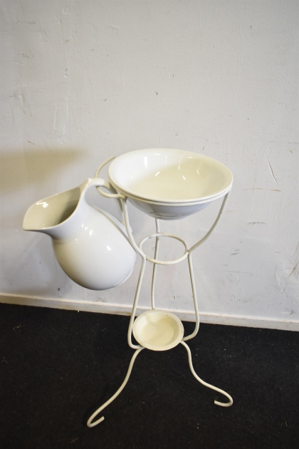 16103. Tvättställ, metall, porslin höjd 82 cm, spricka finns i fat