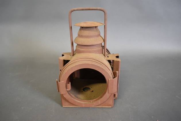 16482. Tåglampa, rostpatina, höjd ca 44 cm