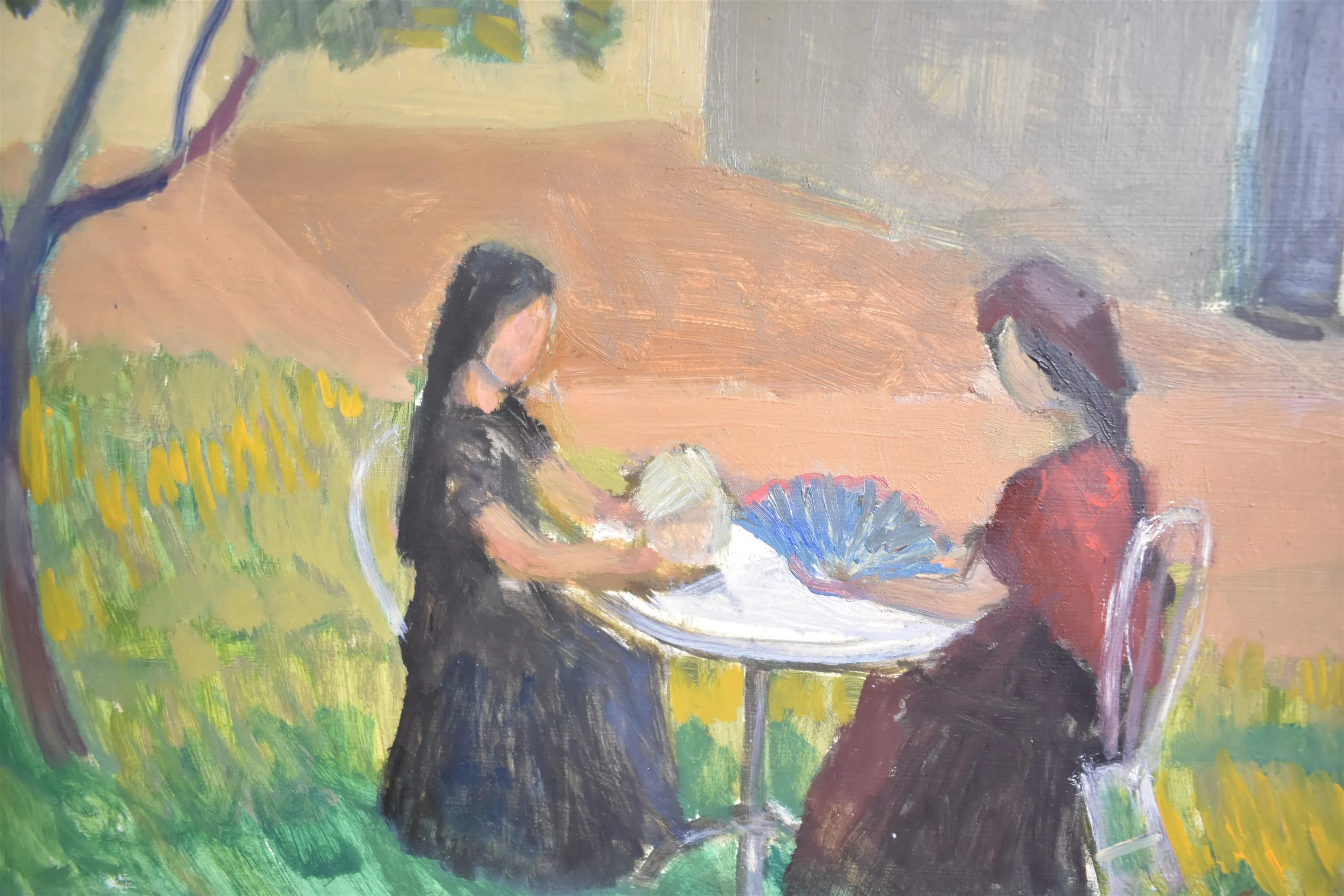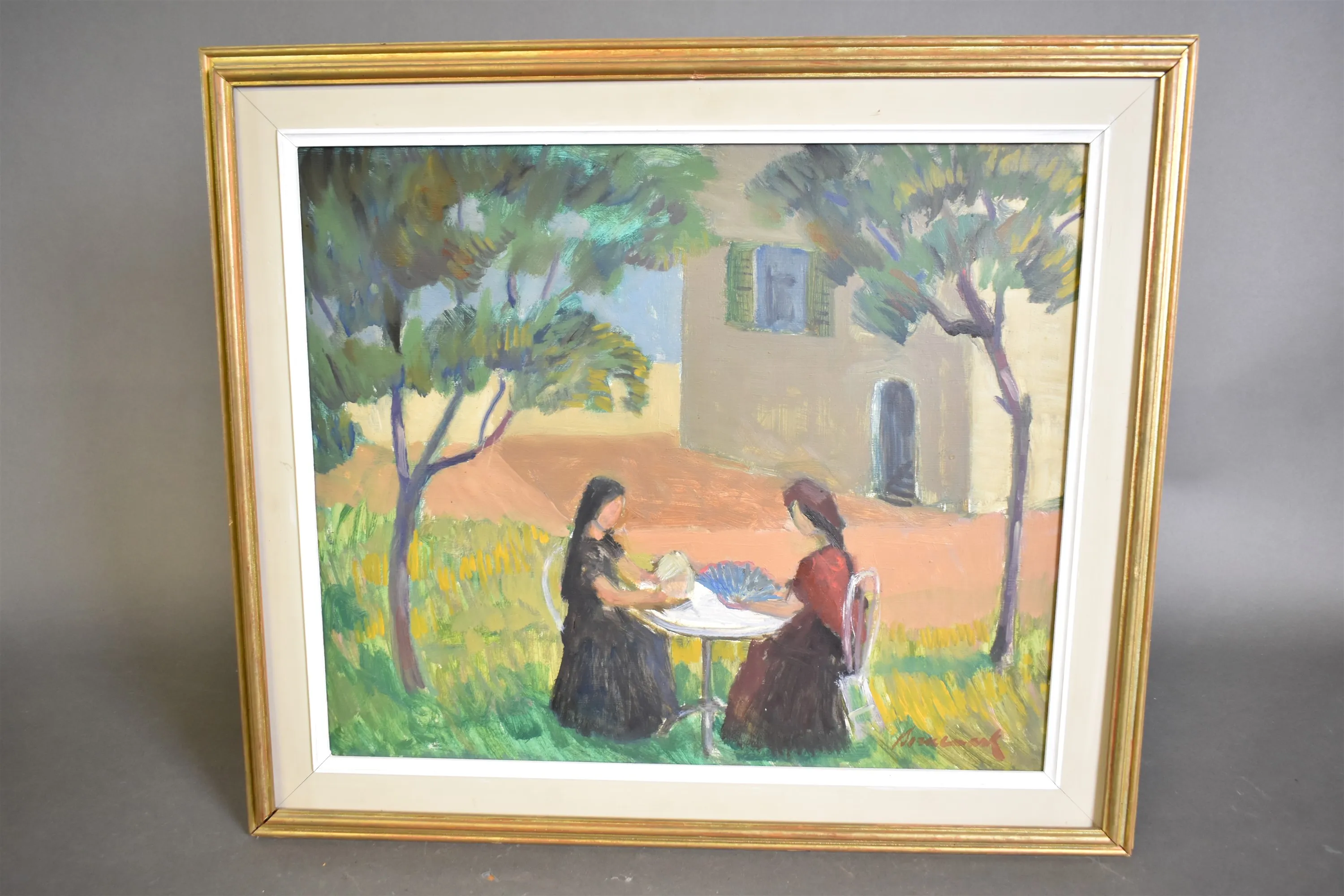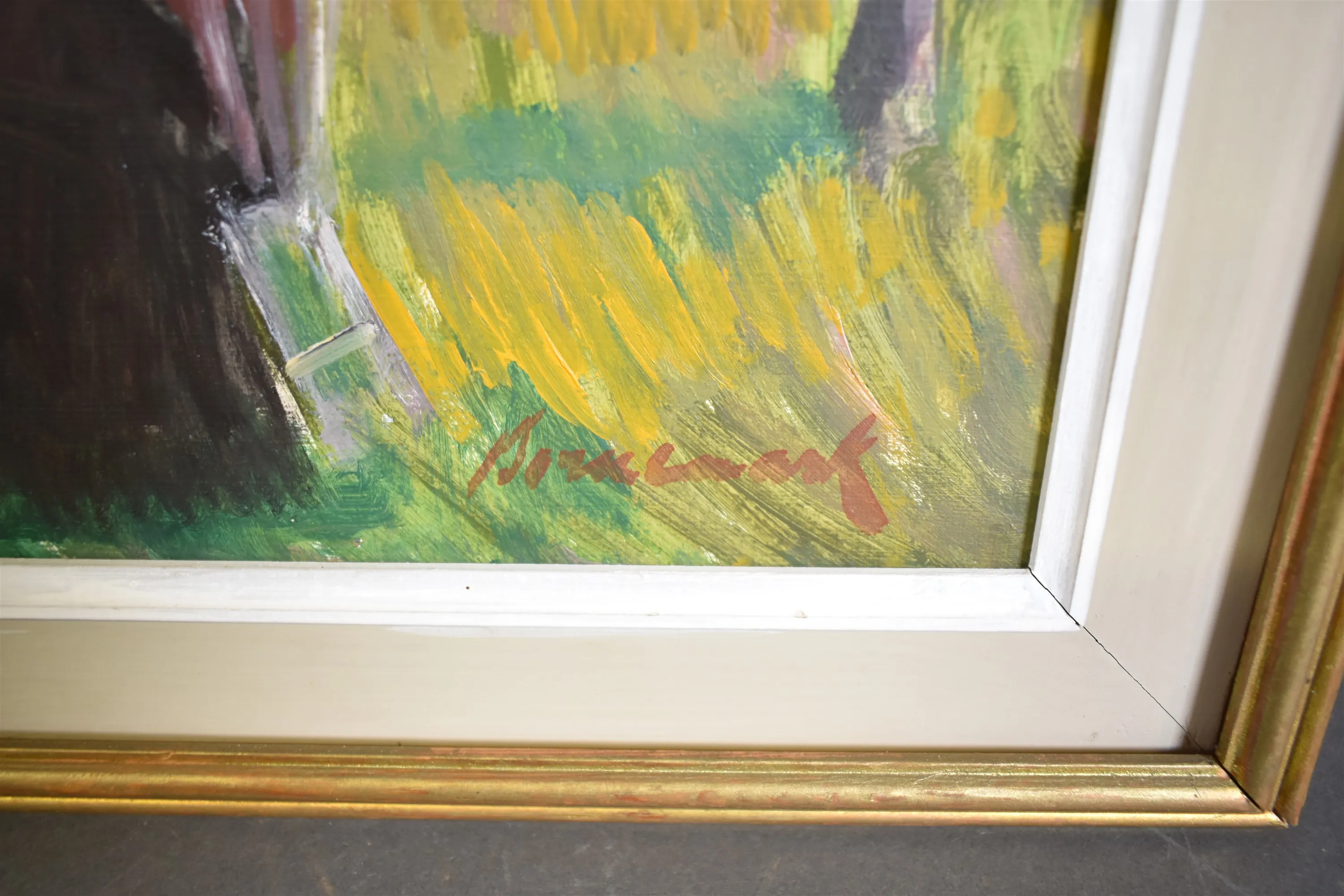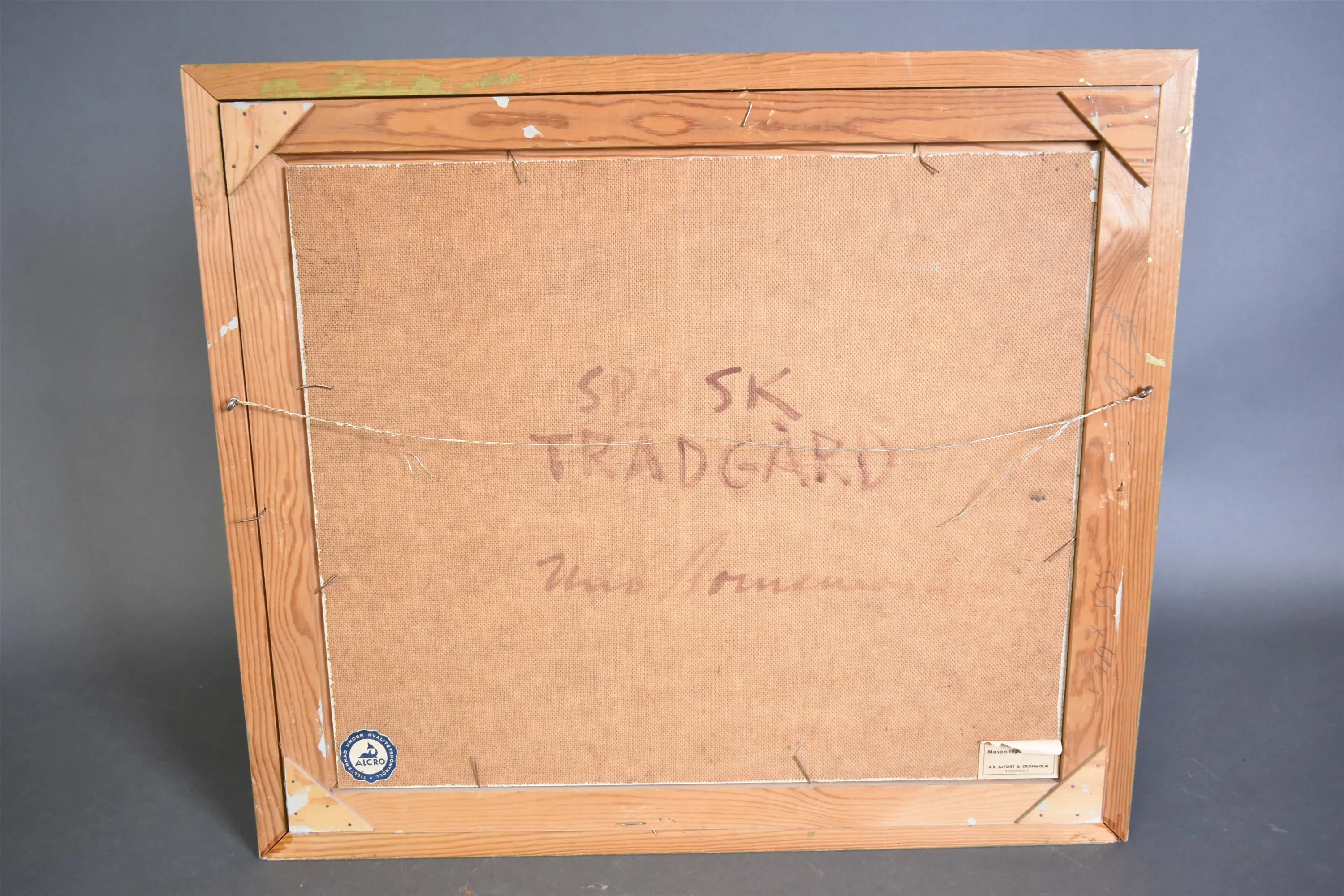 13256. Uno Bornemark olja på pannå, Spansk Trädgård mått 67 x 60 cm