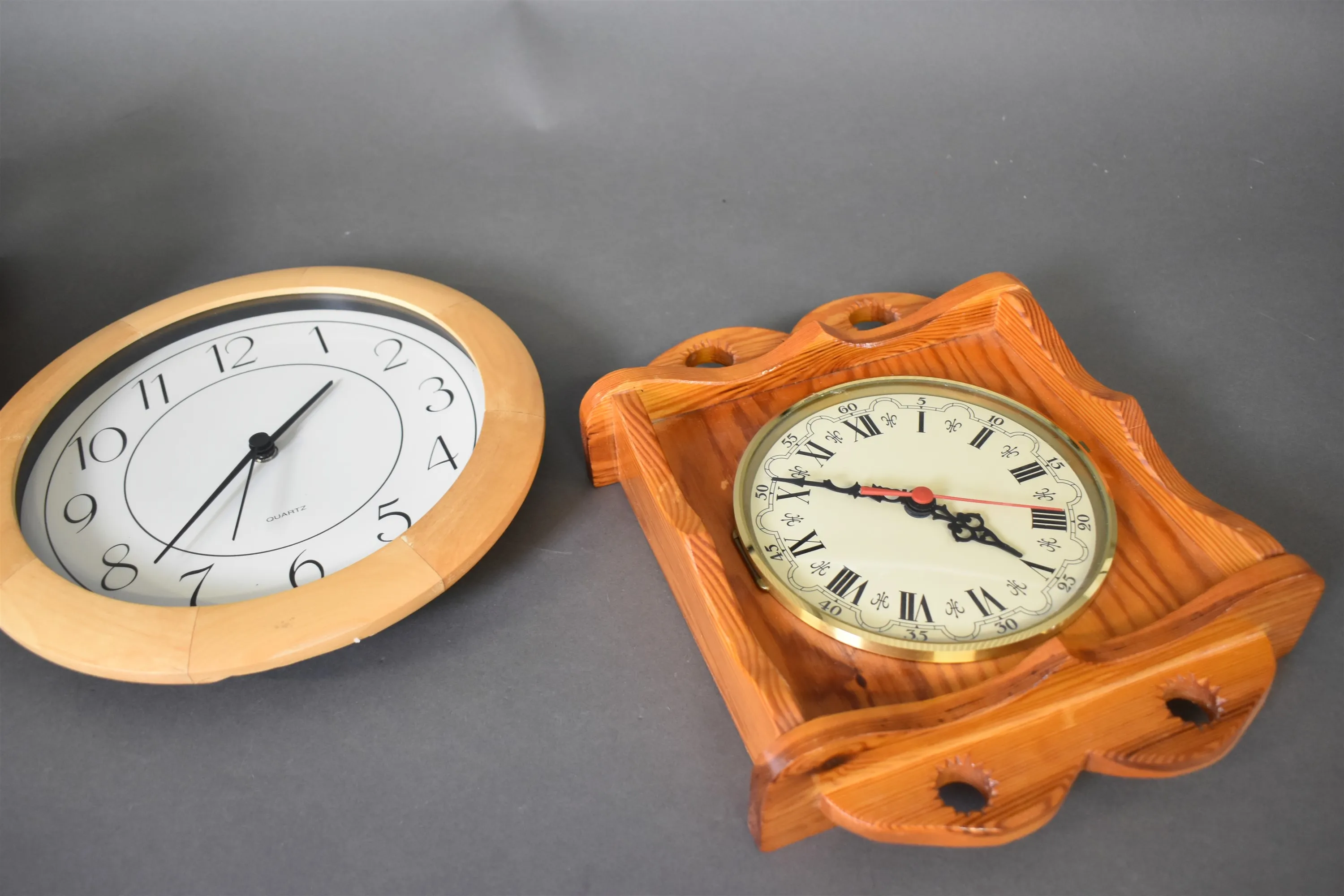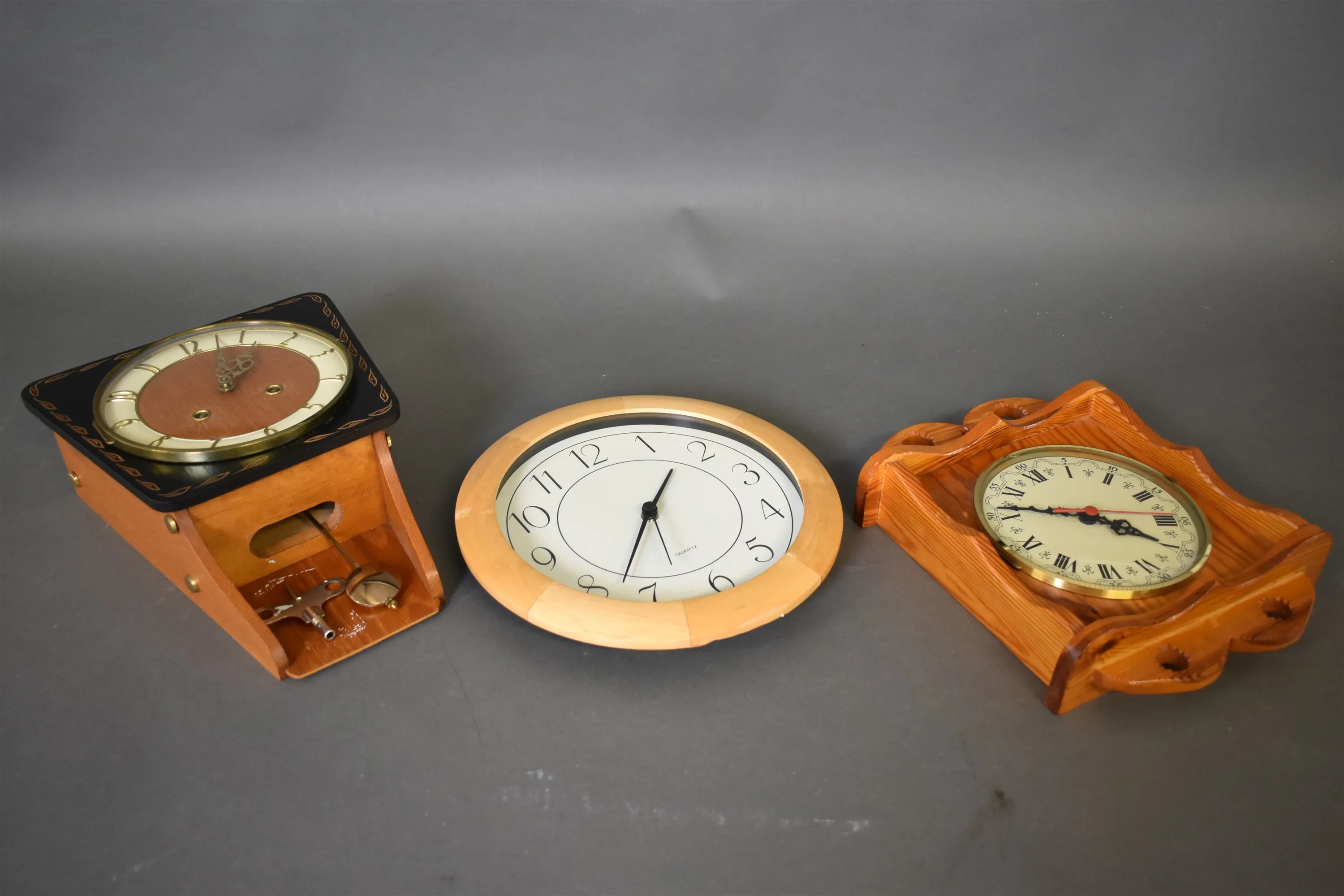 15154. Väggklockor 3 st, längsta mått 31 cm