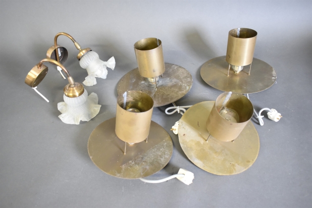 12251. Vägglampor 1 par & 4 kopparlampor högsta 18 cm