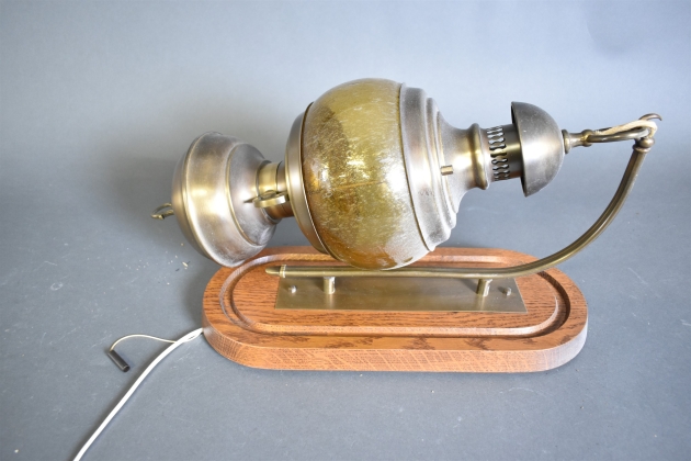 12446. Vägglykta, ek, metall/glas, längd 50 cm