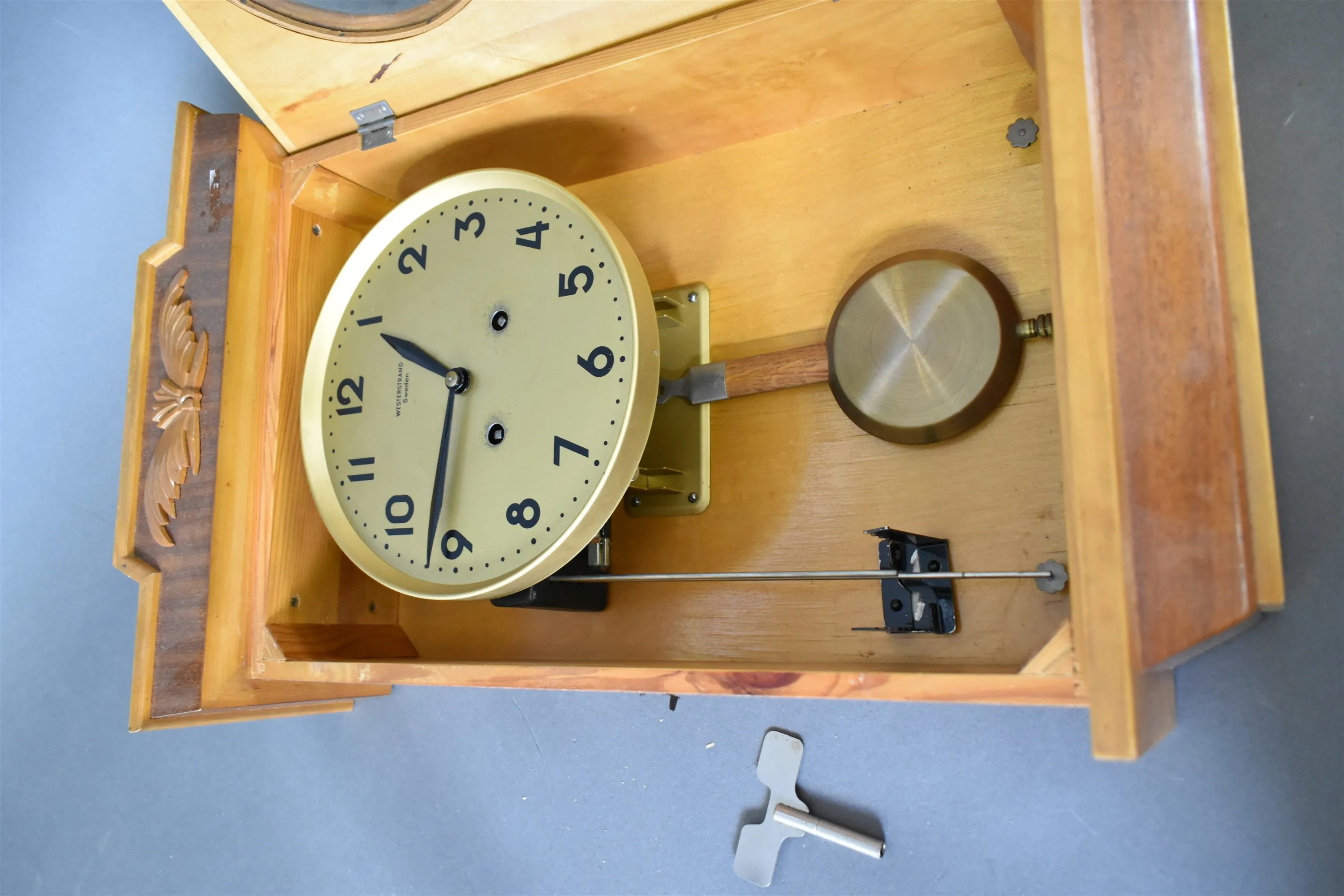 12576. Väggur Westerstrand, björk/mahogny, höjd 53 cm