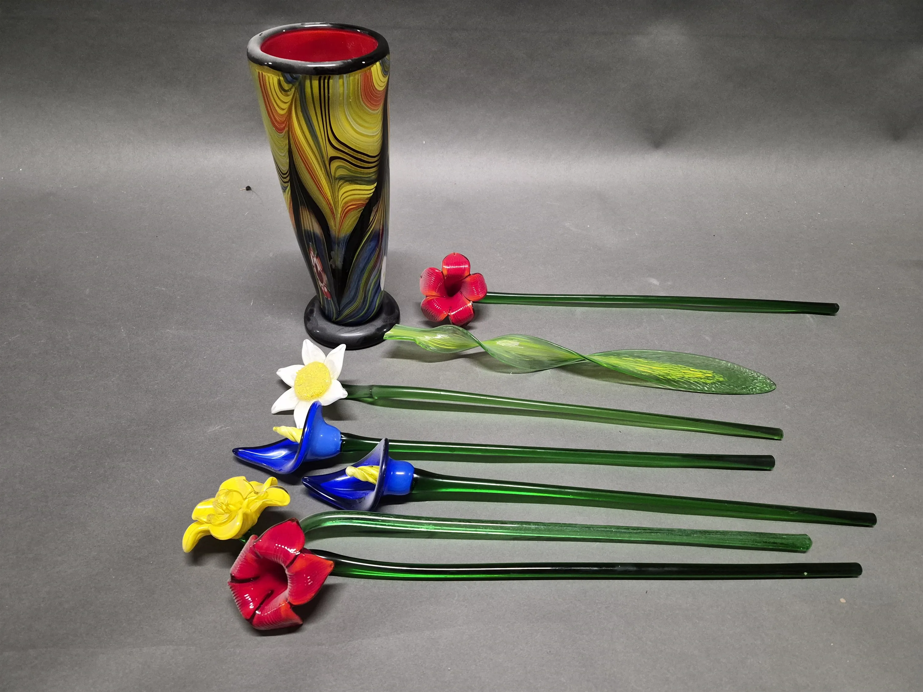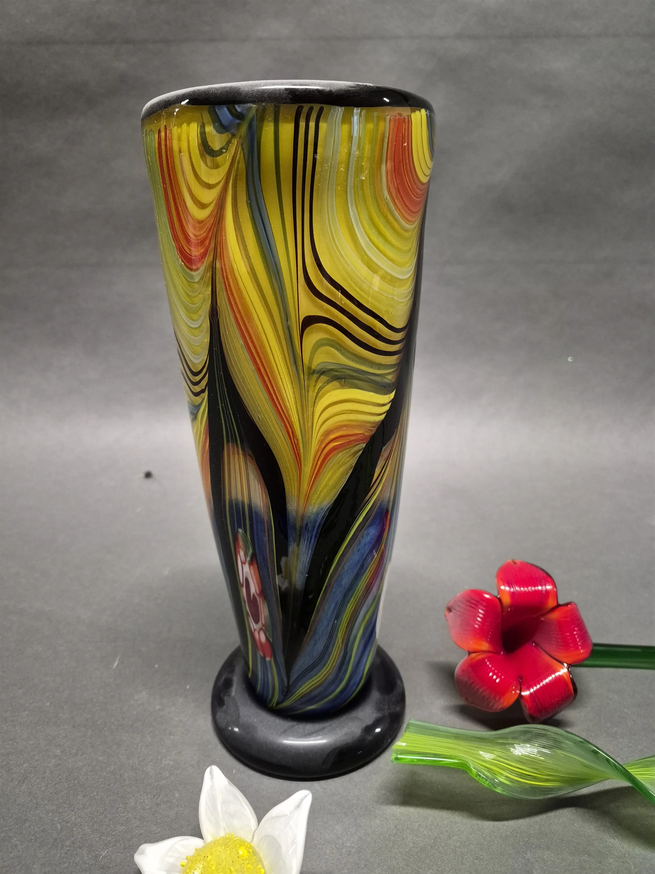 17021. Vas & blommor konstglas höjd vas 31 cm bladet har defekt