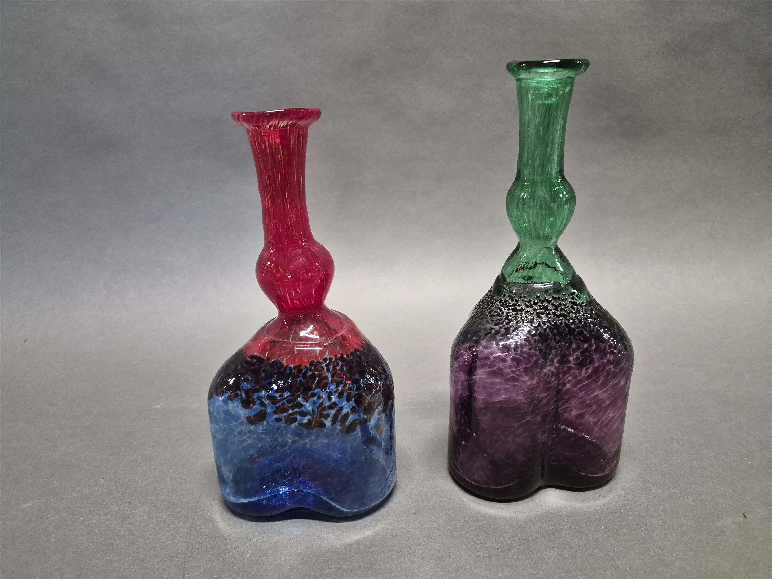 18070. Vaser 2 st Kastlösa, glas, högsta höjd 24 cm