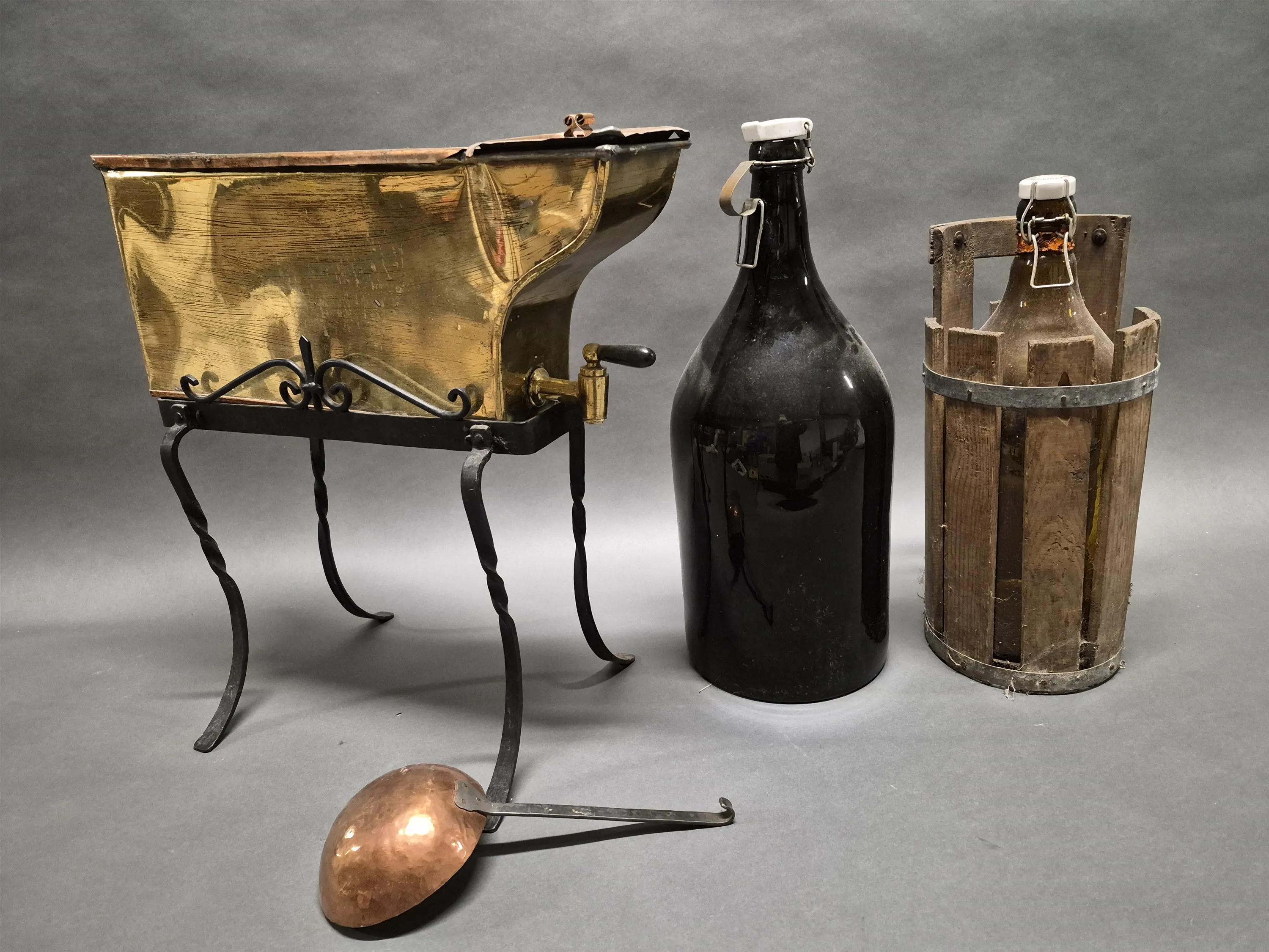 17246. Vattenreservoar på ställ och drickaflaskor 2 st, högsta höjd 53 cm